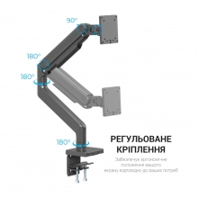 Однією з ключових особливостей MA712B є можливість підняти монітор над робочою поверхнею. Це звільняє цінний простір на столі, який можна використати для організації робочого місця, зберігання аксесуарів та інших необхідних предметів. Такий підхід допомагає створити більш зручне та ефективне робоче середовище, що сприяє підвищенню продуктивності.