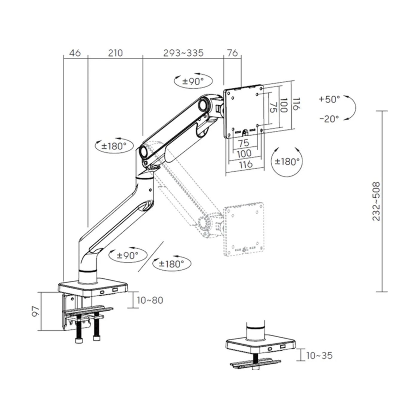 Кріплення OfficePro MA712B оснащене якісними пружинами, які дозволяють легко регулювати висоту, нахил та поворот екрану. Ви можете знайти ідеальне положення для монітора, що допоможе знизити навантаження на шию та спину, покращити осанку та знизити втому при тривалій роботі. Просто налаштуйте кут нахилу та повороту залежно від ваших переваг, і насолоджуйтесь комфортом без зайвих зусиль. Регулювання також дозволяє знайти оптимальний кут для спільної роботи з колегами або при перегляді контенту з різних позицій.
