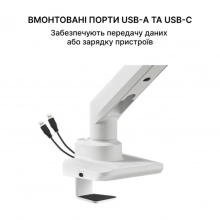 Крепление для монитора OfficePro MA801W 17-49" White / 75х75 / 100х100 / Нахил / Поворот / Висота / Обертання / 12 міс / 17"-49" / Для монітора / OfficePro / ≤ 20 кг / MA801W