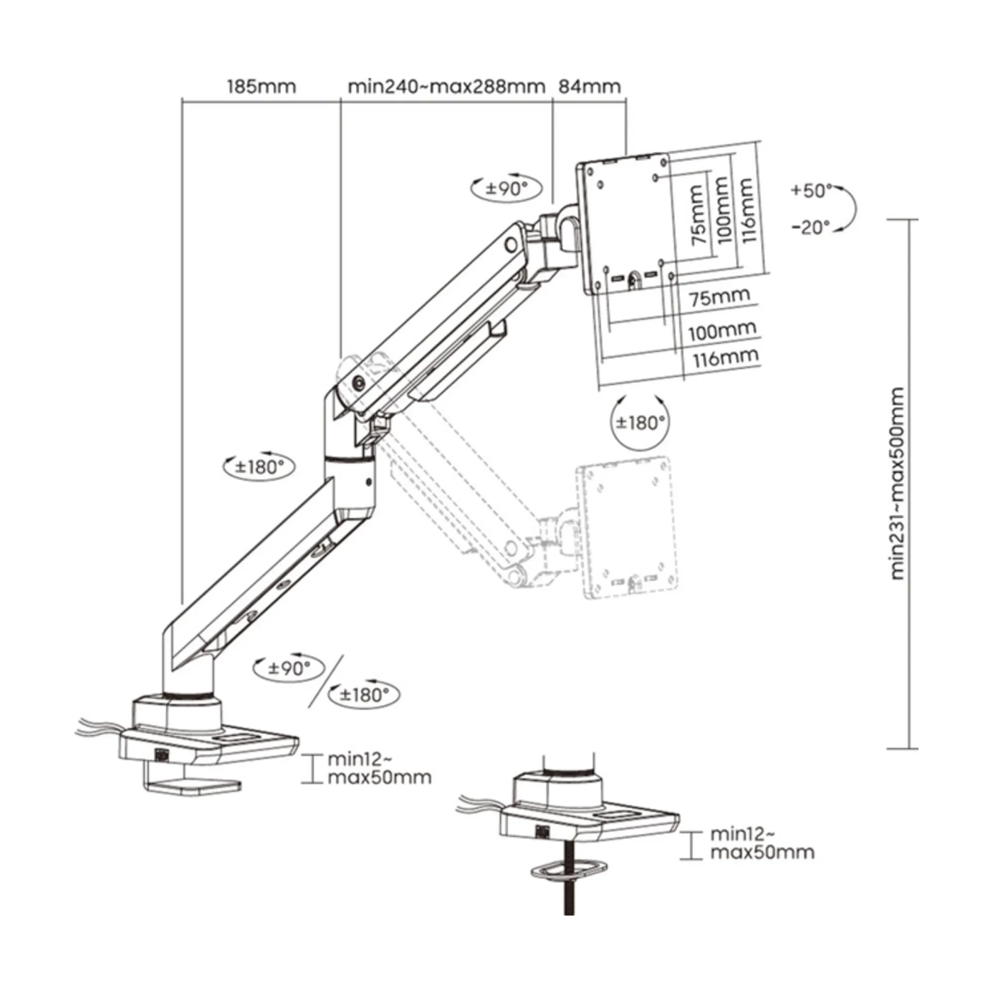 Цей настінний кронштейн забезпечує максимальну свободу в налаштуванні положення монітора. 💡 Він оснащений кількома ступенями регулювання, що дозволяє легко адаптувати дисплей під потрібний кут огляду та робочу відстань.