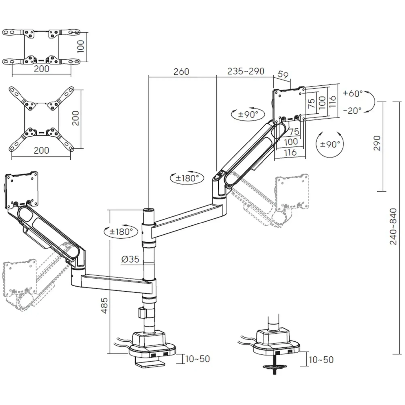 Кріплення для монітора OfficePro MAH752W 24-57" White – це універсальне та міцне рішення для зручного та ергономічного розміщення двох моніторів. Підтримка діагоналі від 24 до 57 дюймів та стандартів VESA 75x75, 100x100, 200x100, 200x200 та 100x200 роблять модель сумісною з широким спектром екранів. Міцна сталева конструкція витримує навантаження до 27 кг на кожен монітор, а шість ступенів свободи дозволяють максимально точно налаштувати положення екранів: від регулювання висоти і глибини до нахилу в діапазоні +20°~-60°, обертання і повороту на ±90°.