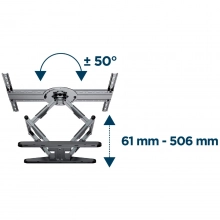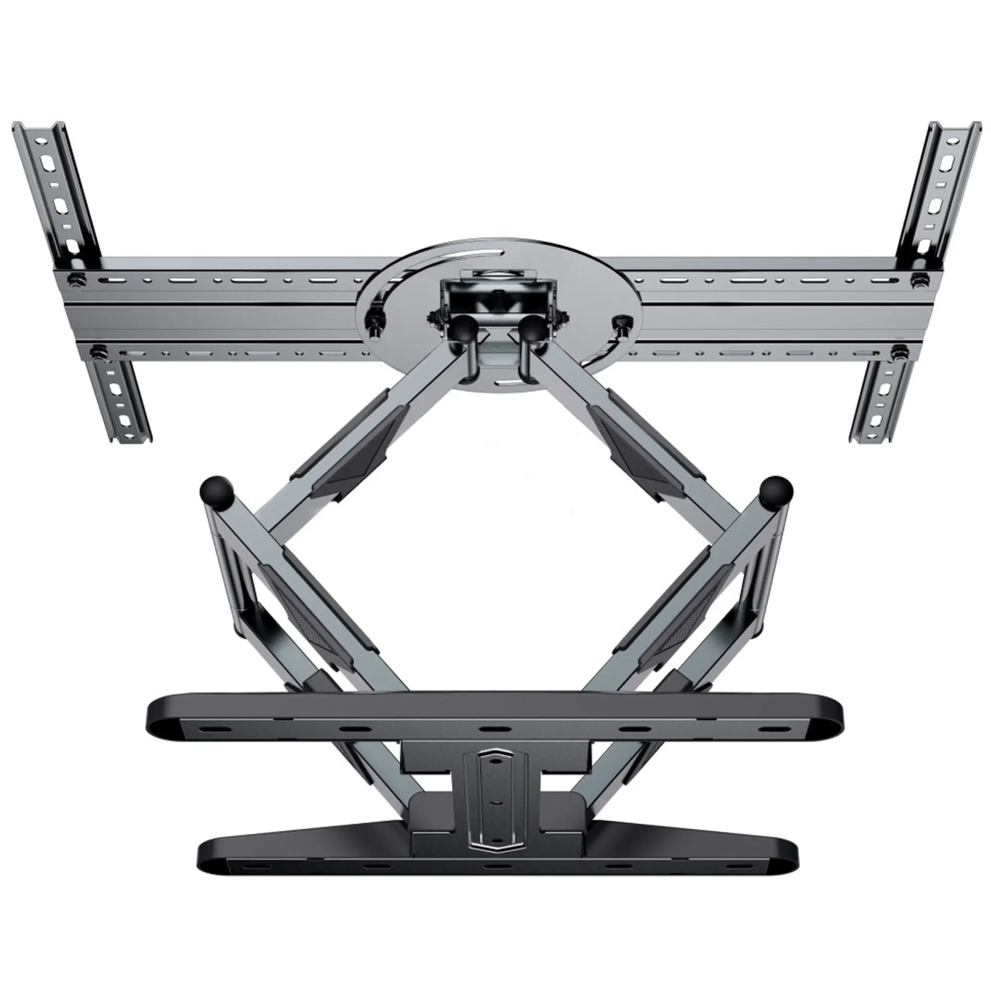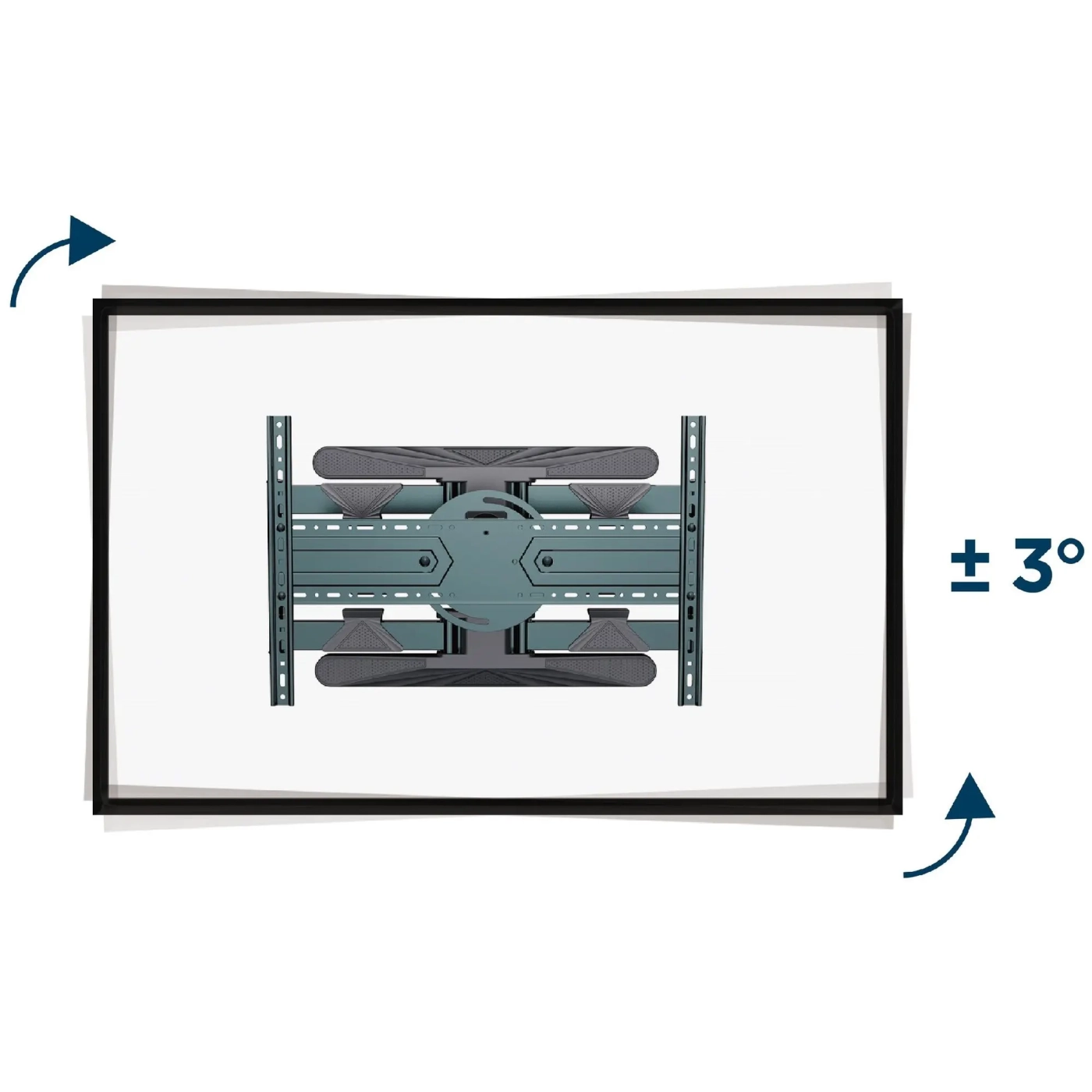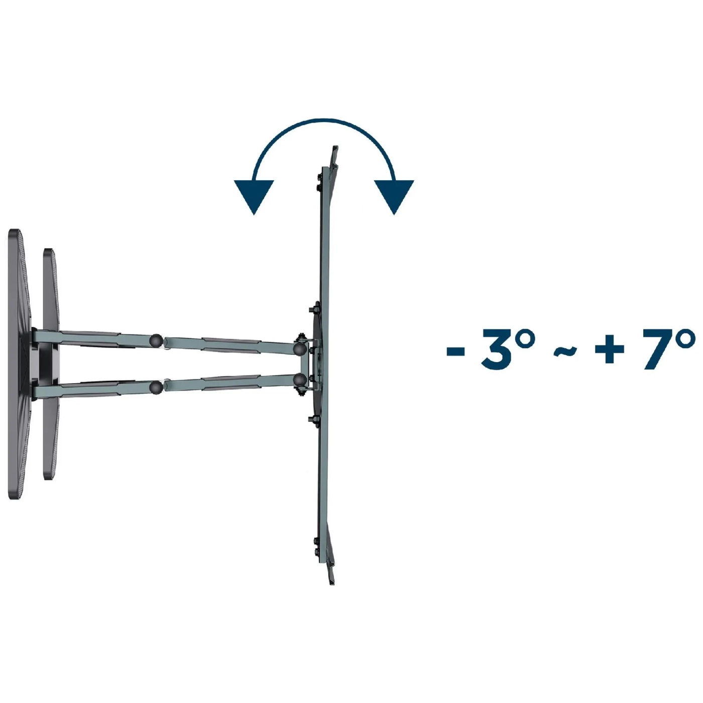 Кронштейн сумісний із стандартами VESA від 100×100 мм до 600×400 мм, що робить його універсальним вибором для багатьох телевізорів і моніторів. Регулювання нахилу від -3° до +7° і поворот ±50° дозволяють налаштувати екран під будь-яким кутом, а поворот на 100° додає зручності при розташуванні. Система управління кабелями на важелях допомагає зберегти акуратний вигляд без видимих проводів.