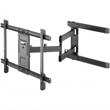 Кронштейн підтримує VESA стандарти до 600×400 мм, тож підходить для більшості сучасних телевізорів. Дозволяє нахиляти екран вниз до -15° і вгору до +3°, а також повертати вліво і вправо до ±90°, що допомагає підібрати ідеальний кут огляду залежно від освітлення. Вбудований рівень допомагає встановити кріплення рівно, а система управління кабелями зберігає охайність зовнішнього вигляду.