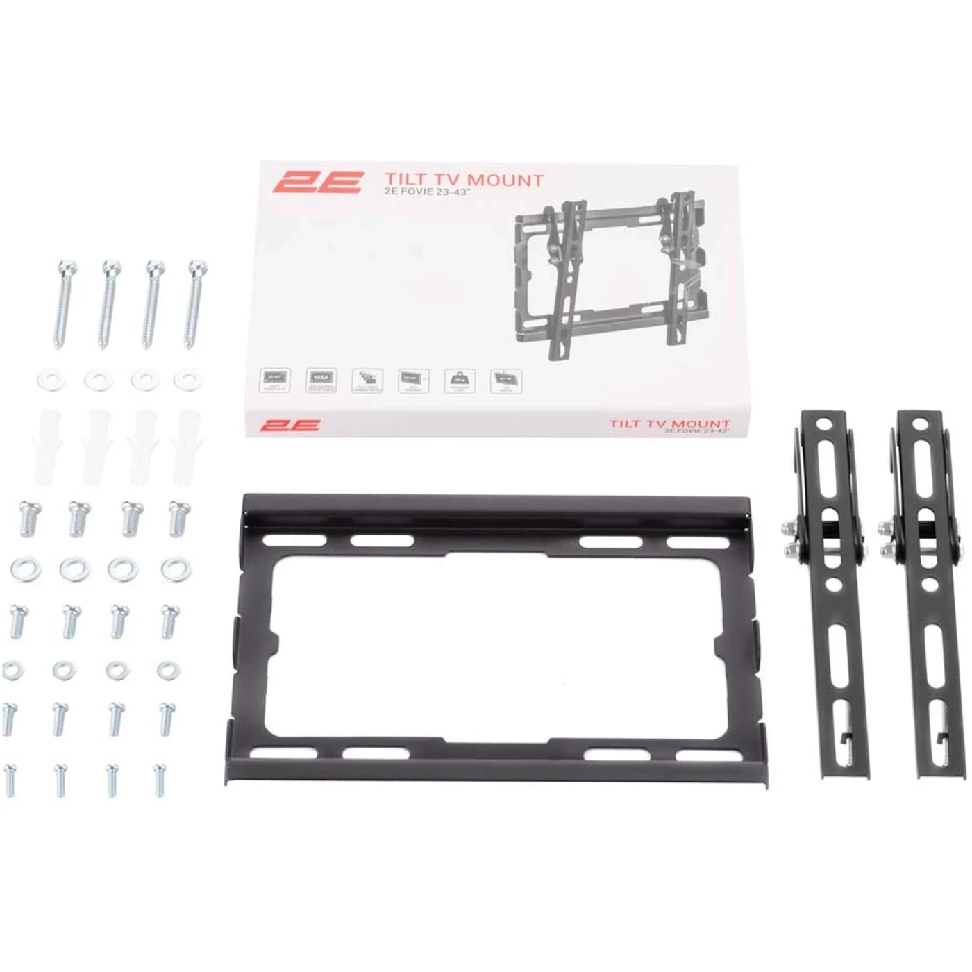 Комплект постачання включає всі необхідні елементи для надійного монтажу. Проста установка та продумана конструкція роблять 2E 2E2GEN2343TILT відмінним вибором як для дому, так і для офісу. З його допомогою ви звільните простір, отримаєте більше зручності та покращите сприйняття контенту.