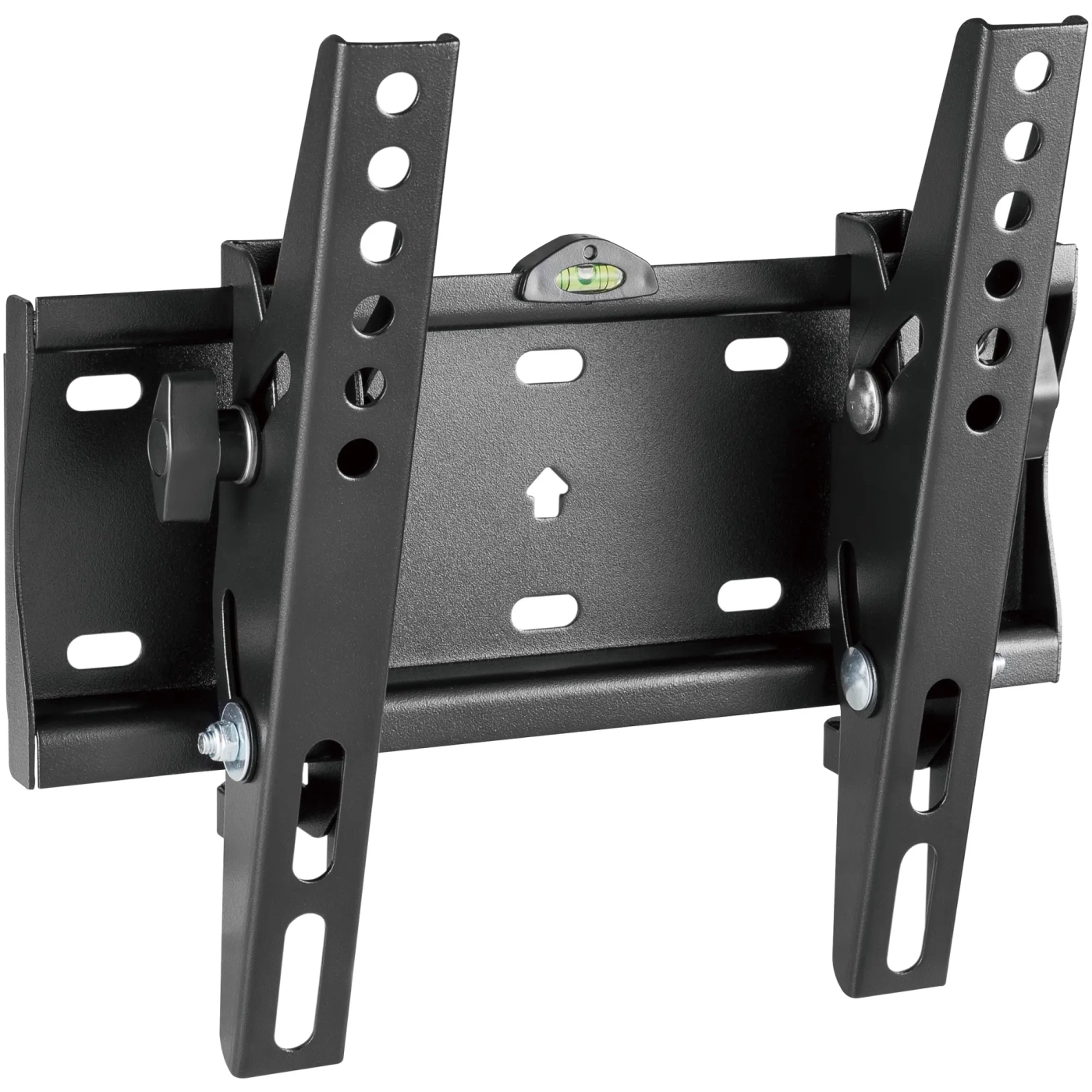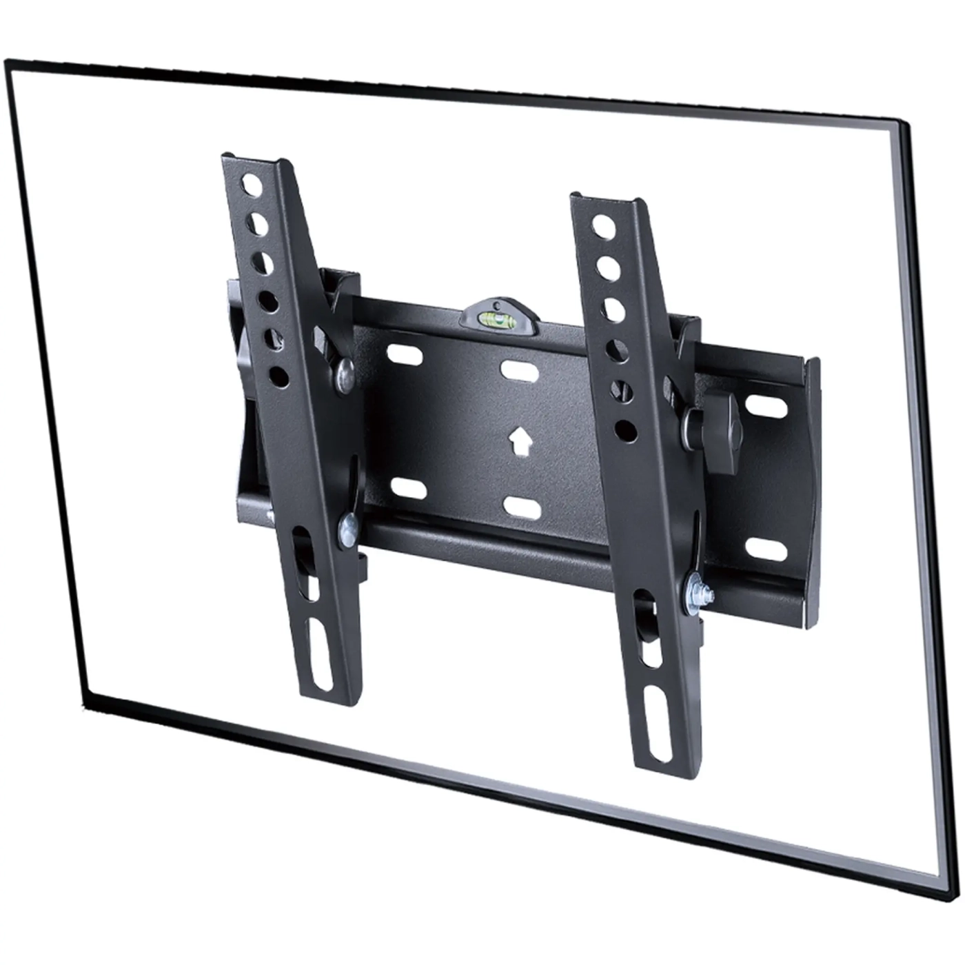 Цей кронштейн має нахильний механізм, який дозволяє відклоняти екран до ±12° для оптимізації кута огляду — це особливо важливо при монтажі на нестандартній висоті або у яскравому освітленні. Відстань до стіни становить всього 53 мм, створюючи тонкий і охайний профіль, а вбудований бульбашковий рівень забезпечує точність під час монтажу. Сумісність із стандартами VESA (75×75, 100×100, 200×100 та 200×200 мм) робить його універсальним для більшості моделей.