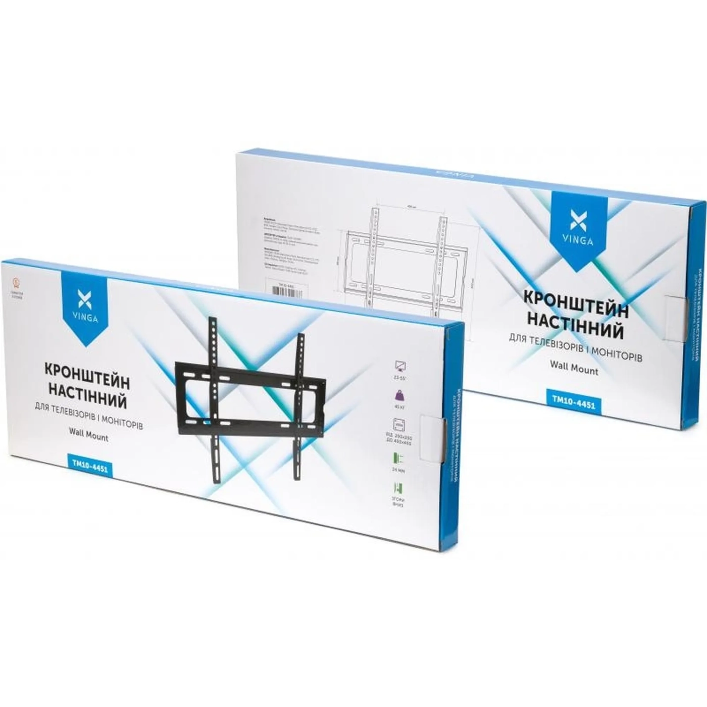 Кронштейн Vinga TM10-4451 / 200x200 / 300x200 / 300x300 / 400x200 / 400x300 / 400x400 / 23"-55" / 60 міс / Для телевізора / Для монітора / Vinga / ≤ 45 кг / TM10-4451