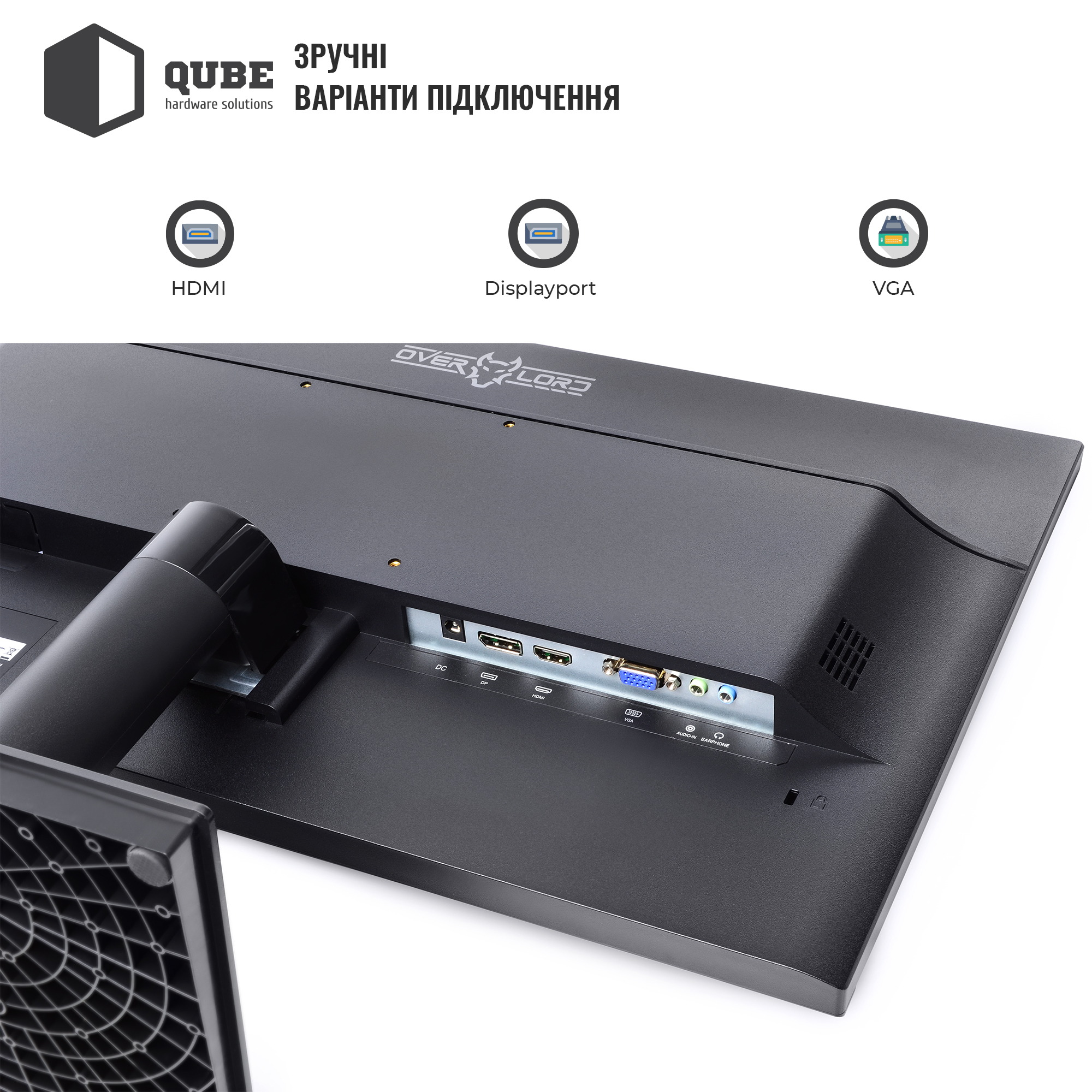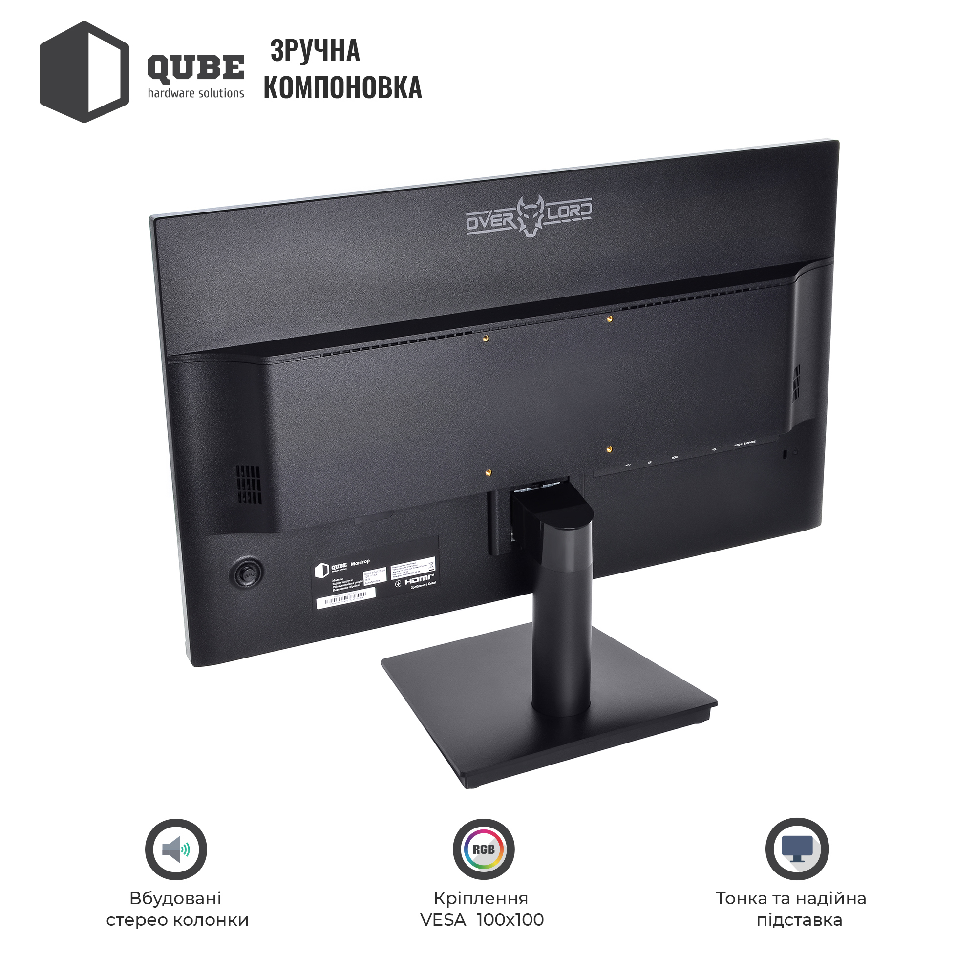 Монітор 23.8" QUBE B24F75-VA оснащений якісною VA-матрицею та яскравим LED-підсвічуванням, що створює якісну та яскраву картинку. Широкі кути огляду дозволяють з комфортом працювати, вчитися, переглядати відео та грати на моніторі незалежно від положення, а якісне антиблікове покриття зробить це можливим навіть у сонячну погоду.
