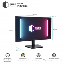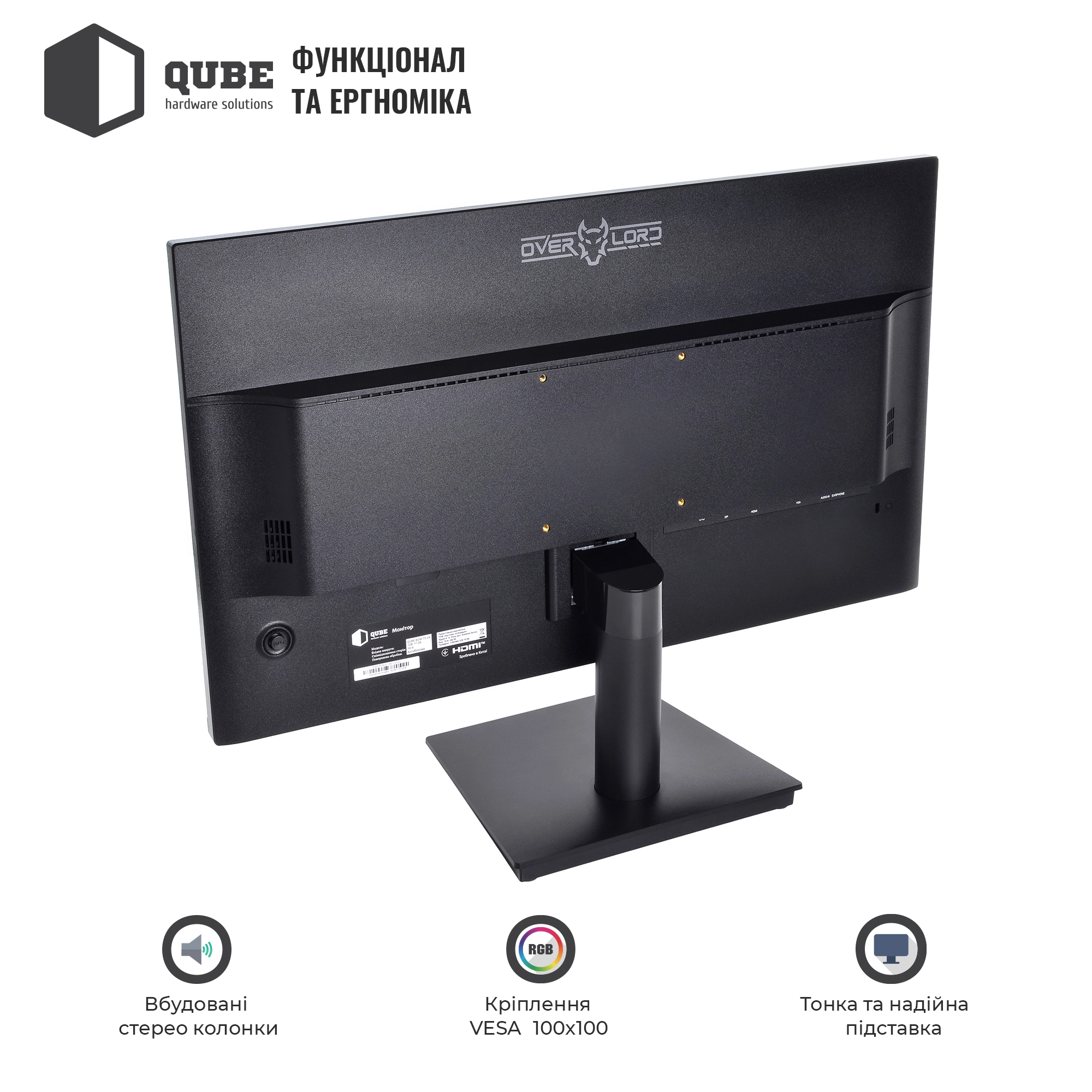 Монітор QUBE Overlord B24F75Plus-IPS розроблений з урахуванням безлічі випробувань, тестів та багаторічного досвіду з метою досягти максимального комфорту та безпеки користування, незалежно від призначення, будь то перегляд фільмів, робота з графікою або улюблені ігри .