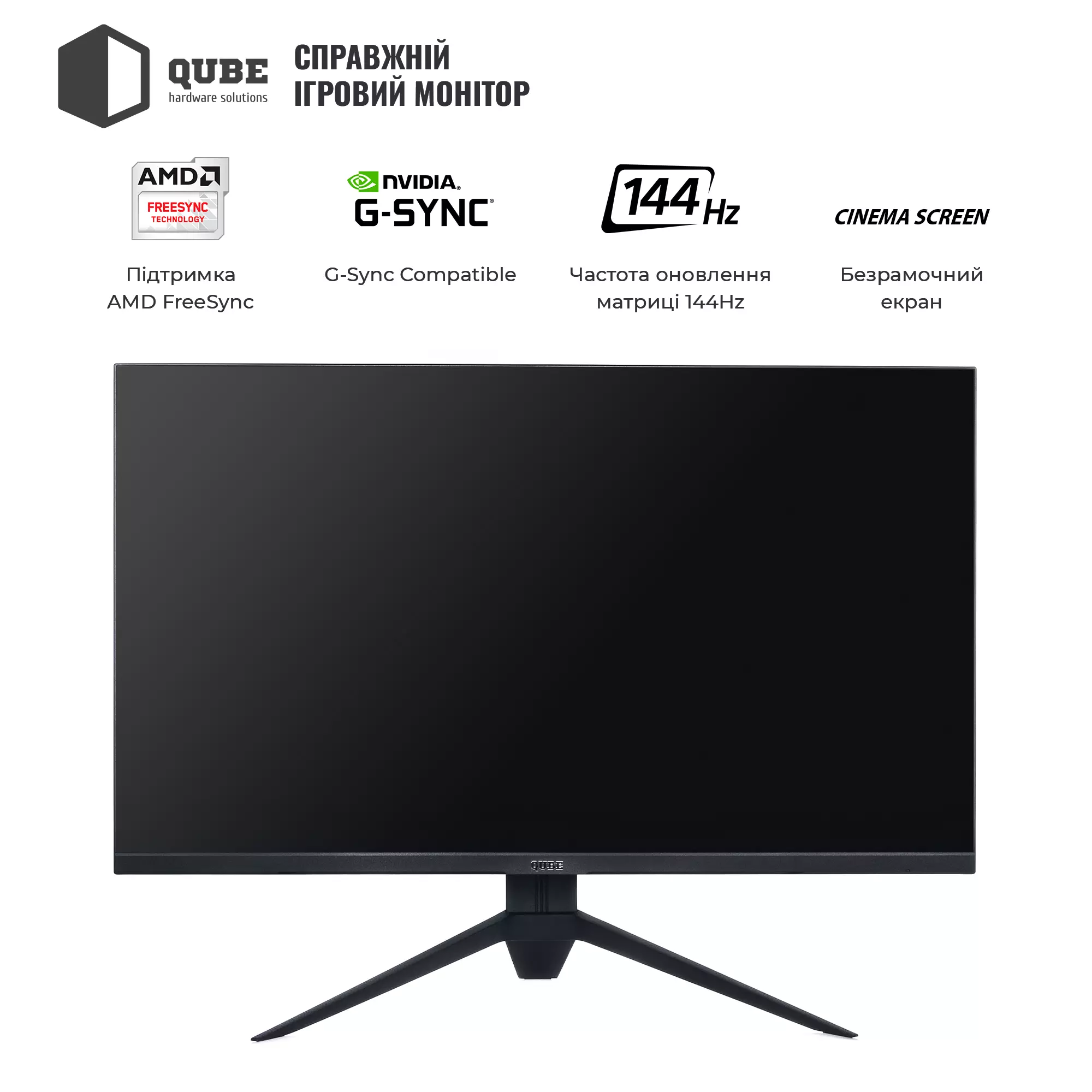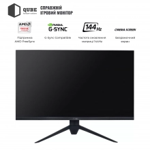 Монітор QUBE Overlord G27F144 / 27" / Full HD 1920х1080 / IPS / 144Hz / 1ms / 16:9 / 300 cd|m² / 54W / 100x100 / 75x75 / 36міс. / G27F144