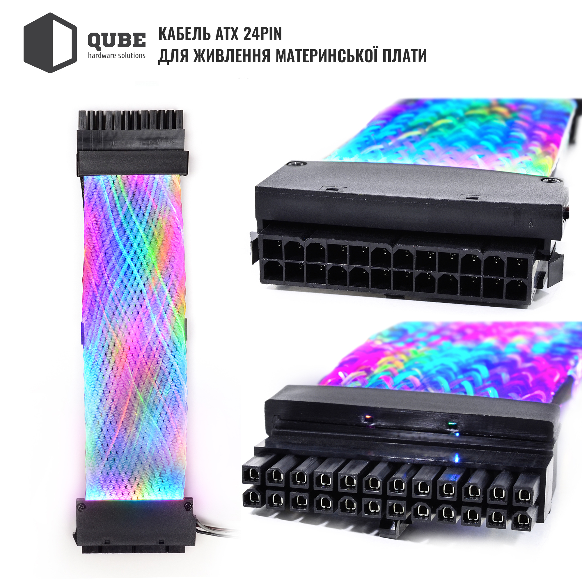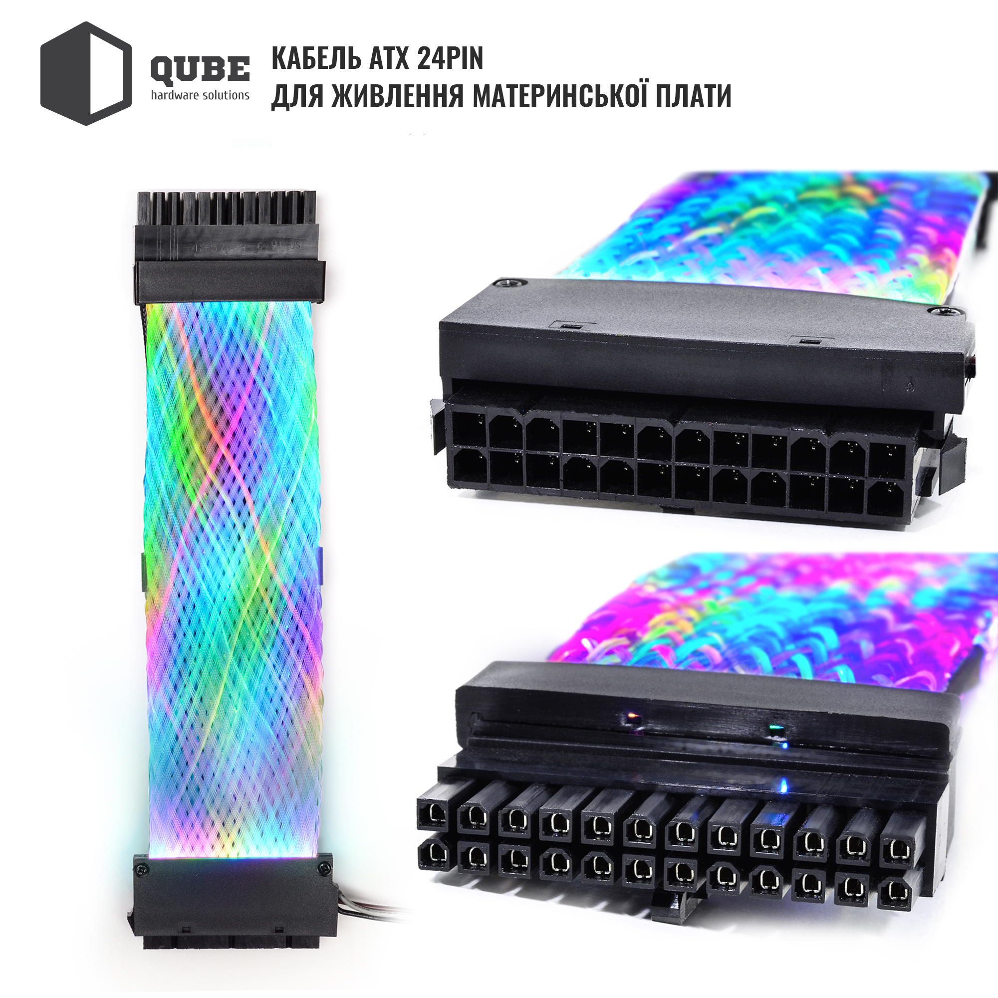 Комплект кабелів-подовжувачів для блоку живлення з комбінованими роз'ємами довжиною 350 мм. Виготовляються з товстого мідного кабелю 16AWG із застосуванням якісного обплетення з багатобарвною LED-підсвіткою, яка дозволить додатково індивідуалізувати вашу збірку.