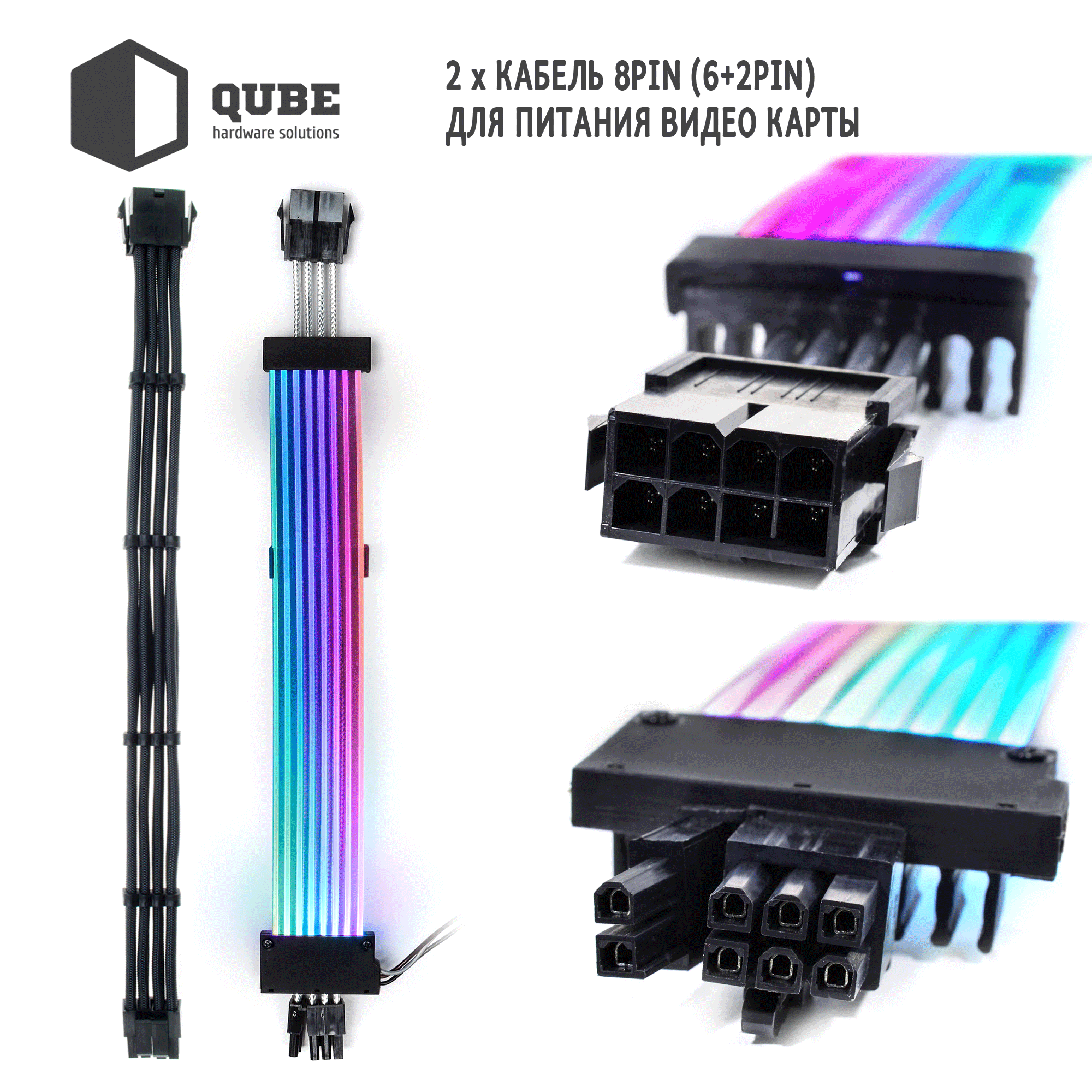 Комплект кабелів-подовжувачів для блоку живлення з комбінованими роз'ємами довжиною 350 мм. Виготовляються з товстого мідного кабелю 16AWG із застосуванням якісного обплетення з багатобарвною LED-підсвіткою, яка дозволить додатково індивідуалізувати вашу збірку.