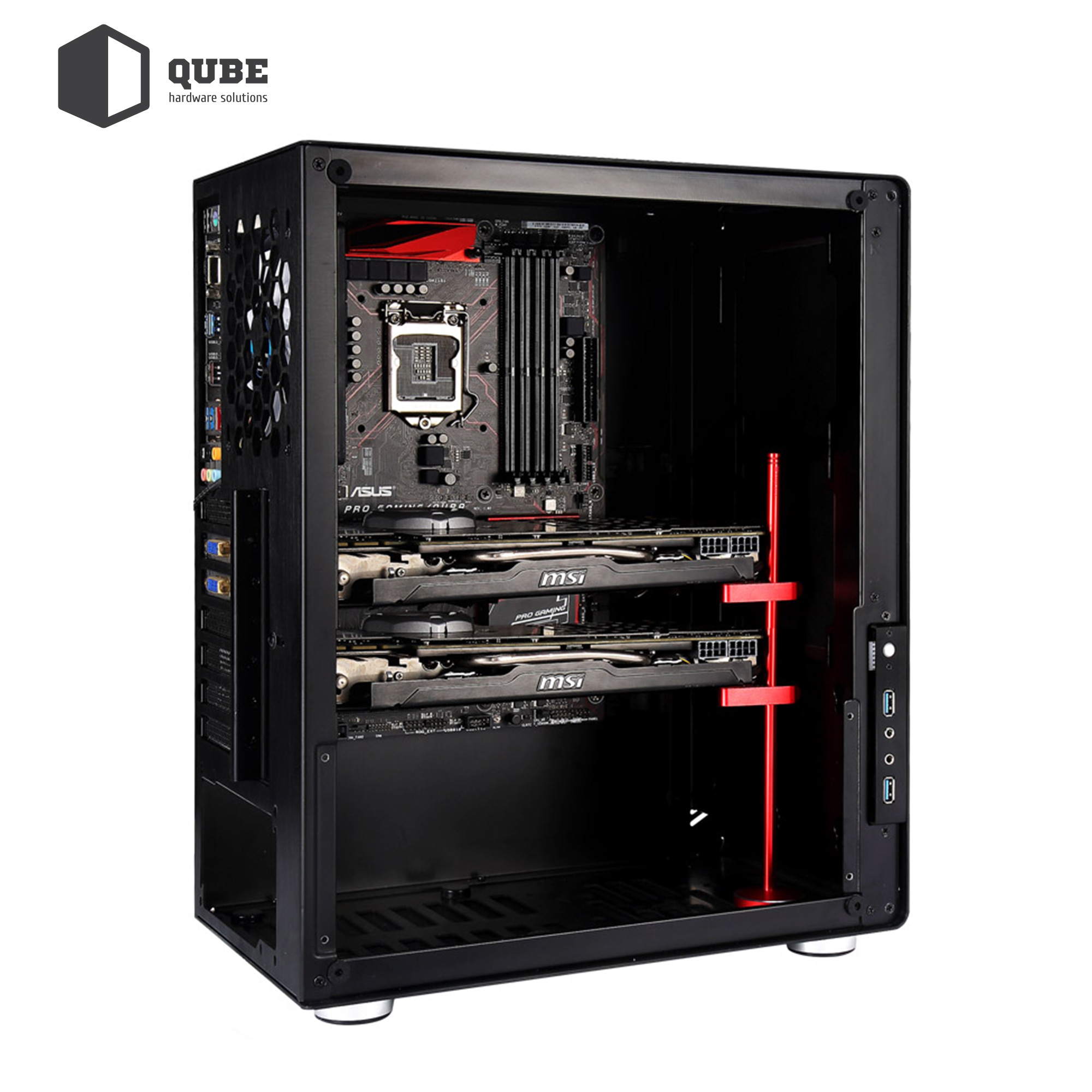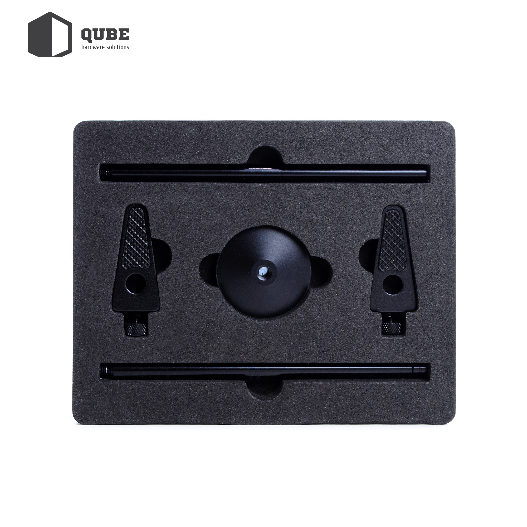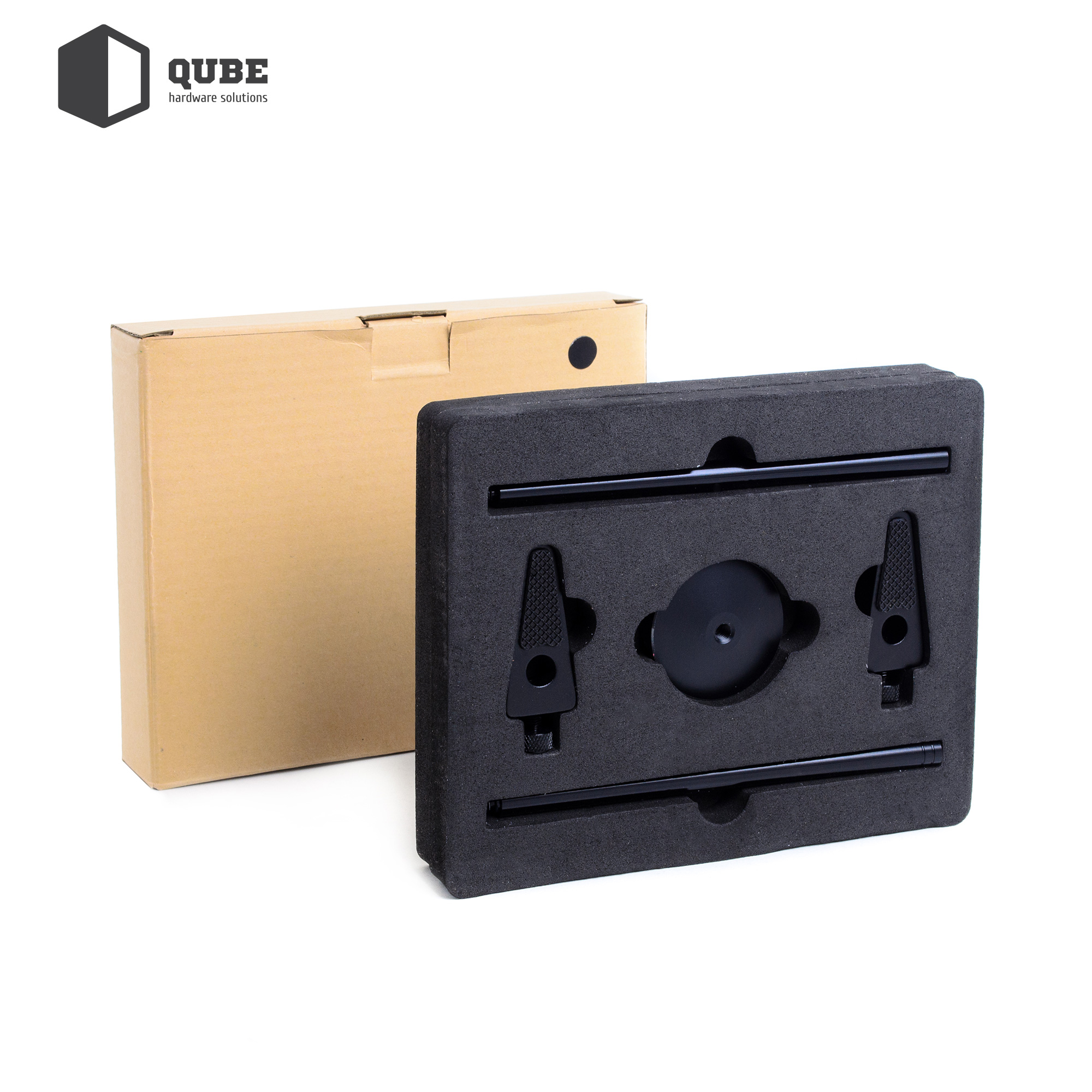 Підставка для відеокарти Qube VC-1 Black – це необхідний аксесуар для геймерів і професійних творців контенту, яким потрібна для роботи установка однієї або двох потужних довгих відеокарт. Тримач виготовлений з алюмінієво-магнієвого сплаву з чорним покриттям. Незважаючи на легку вагу (всього 150 грам), він досить надійний і міцний, і зможе впоратися з підтримкою до двох відеокарт з рідинним охолодженням.