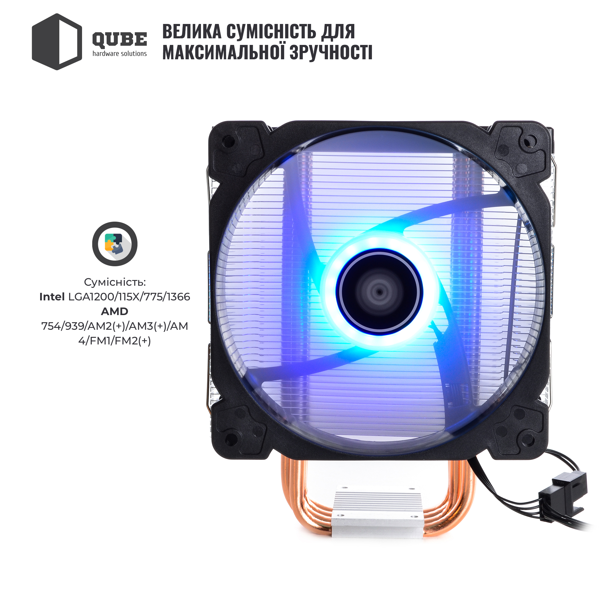 QB-OL1200 – це ефективний компактний баштовий кулер для охолодження центрального процесора від нового бренду QUBE.