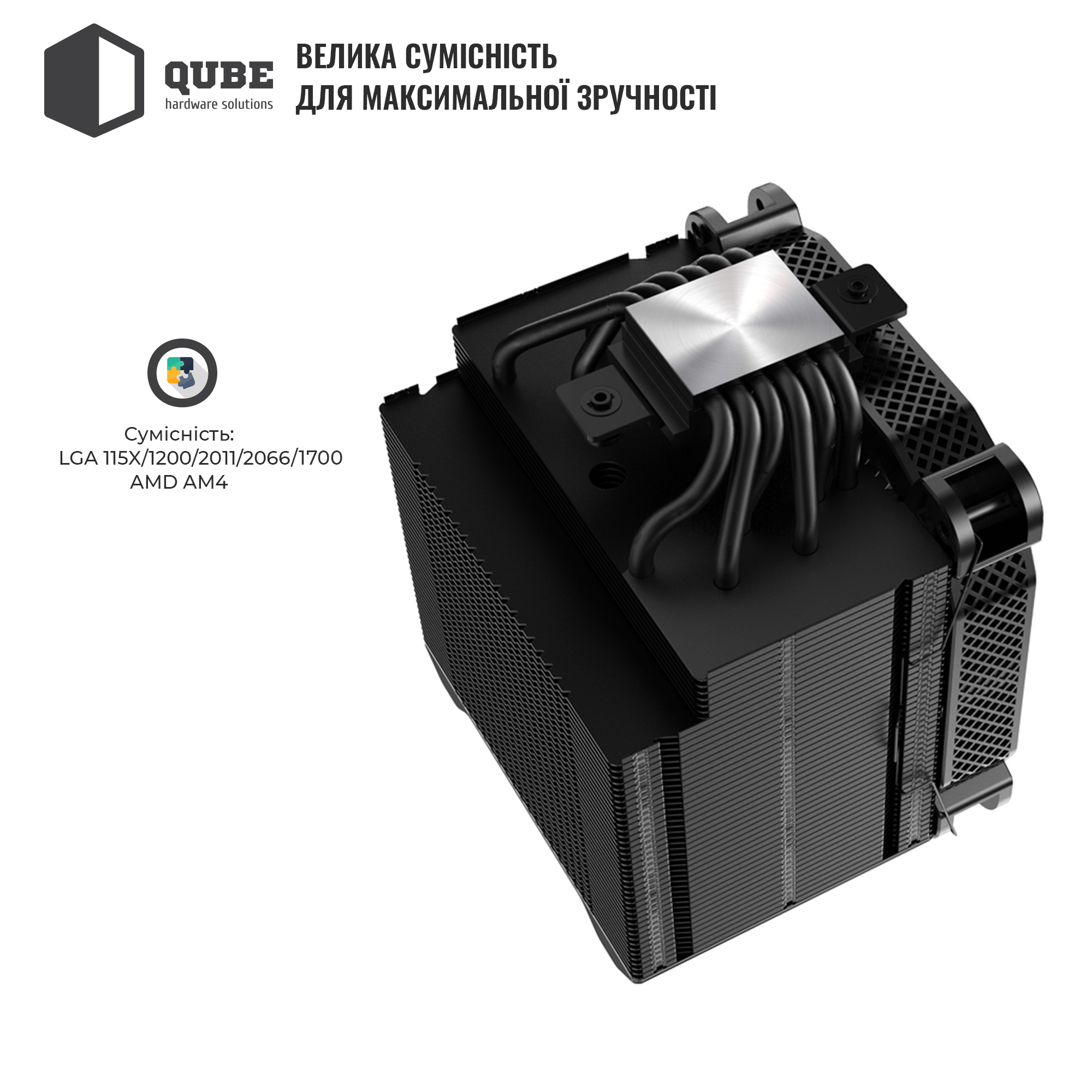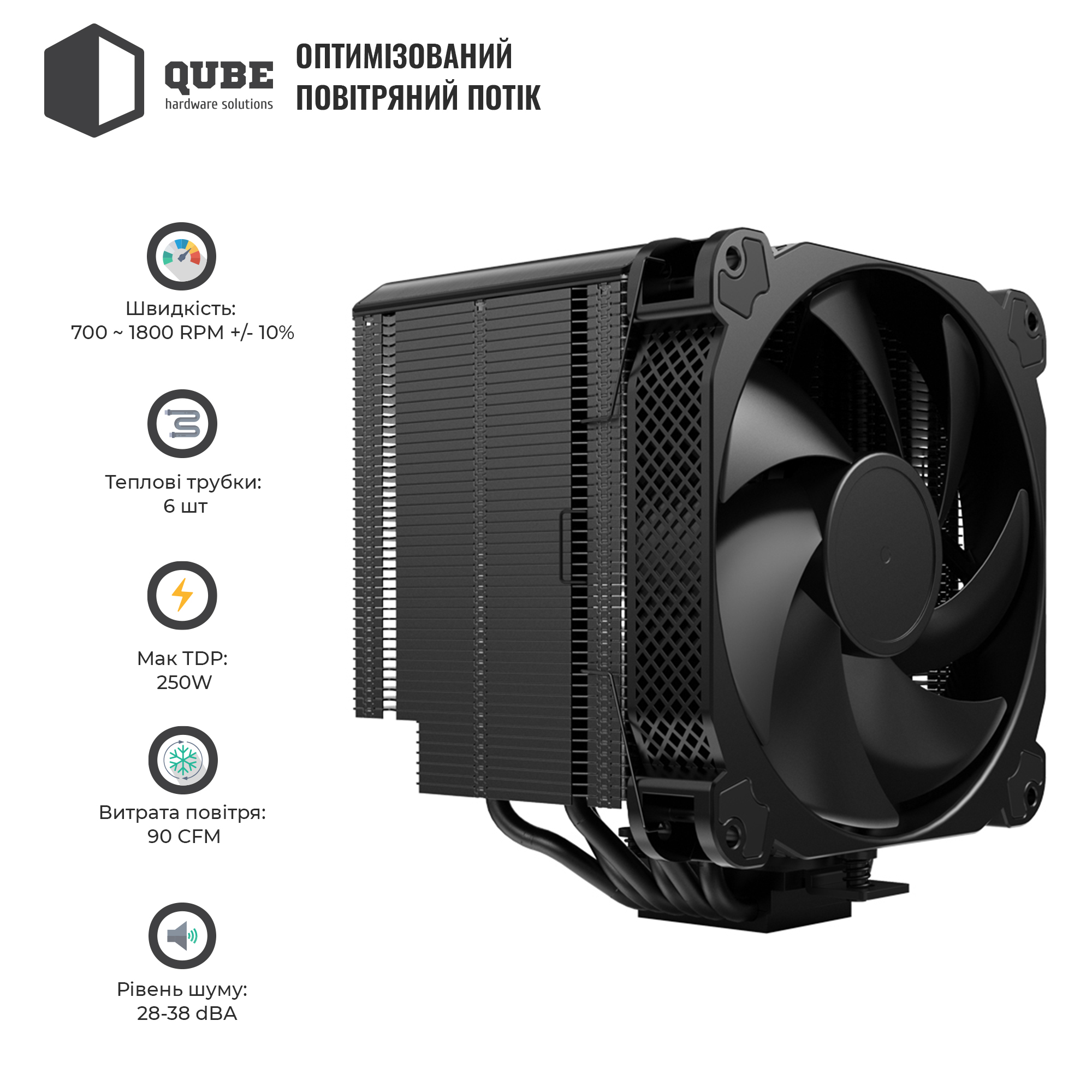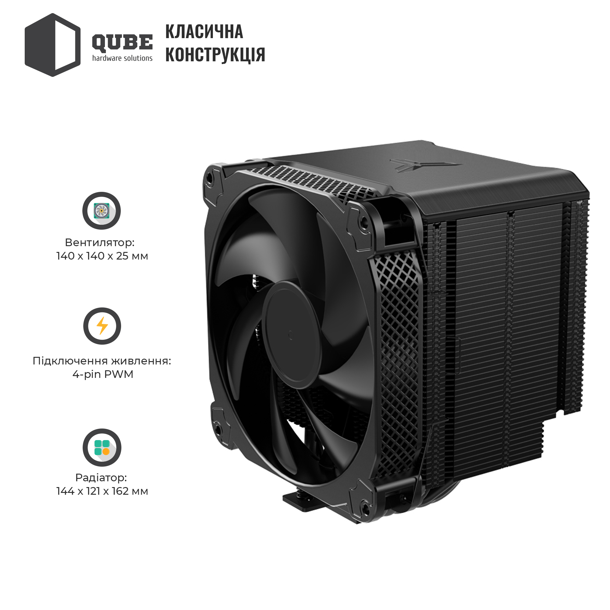Процесорний кулер QUBE QB-OL6250 / Баштова / Кулер / Вентилятор: 140 x 140 x 25 мм / Retail / 12міс. / QB-OL6250