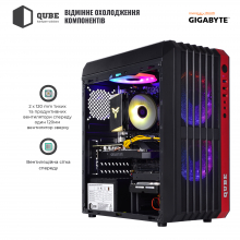 • Чорний з яскравою червоною смужкою корпус QUBE QB43M формату MiddleTower з блоком живлення на 550 Вт сертифікації 80+ Bronze від виробника GIGABYTE та трьома LED вентиляторами для підтримання оптимальної температури всередині.