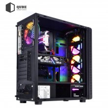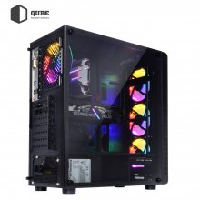 - Вражаючий та просторний корпус QUBE STORM з блоком живлення на 500 Вт та набором 5-колірних LED вентиляторів для відмінного охолодження.