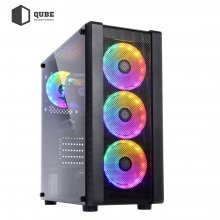 - Яскравий та привабливий корпус QUBE STORM з блоком живлення на 600 Вт та чотирма пятиколірними вентиляторами для підтримки оптимальної температури.