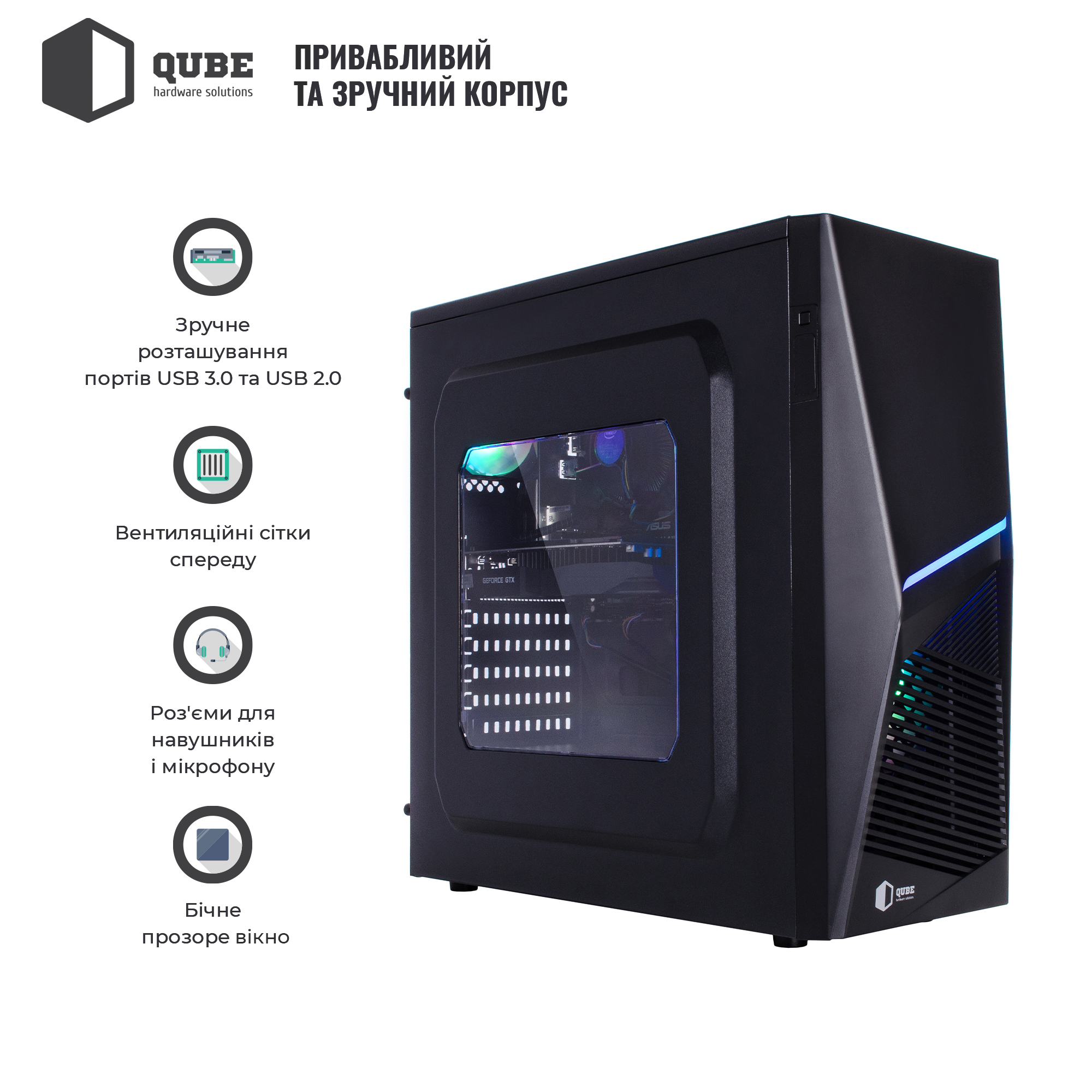 Системний блок QUBE Ігровий QB Ryzen 5 5500 GTX 1660 6GB 3241 / AMD 6-core Ryzen 5 5500 3.6-4.2GHz / GeForce GTX 1660 6GB / 32GB DDR4-3200 / 480GB SSD / 1TB / A320M-DVS R4.0 / QUBE FLASH / 500W / QB-OL1300 / Без ОС / 36міс. / Ryzen55500GTX16606GB3241