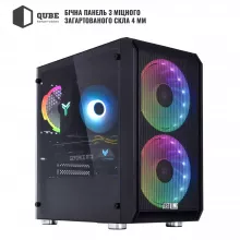 Корпус QUBE NEPTUNE Mini у класичному чорному виконанні поєднує компактність, стиль і продумане охолодження. Три RGB-вентилятори — 2×160 мм спереду та 1×120 мм ззаду — створюють інтенсивний потік повітря, а бічна панель із 4-мм загартованого скла підкреслює естетичність збірки. Система оснащена LED-керуванням, пиловим фільтром на верхній панелі та оптимально продуманим внутрішнім простором для циркуляції повітря.