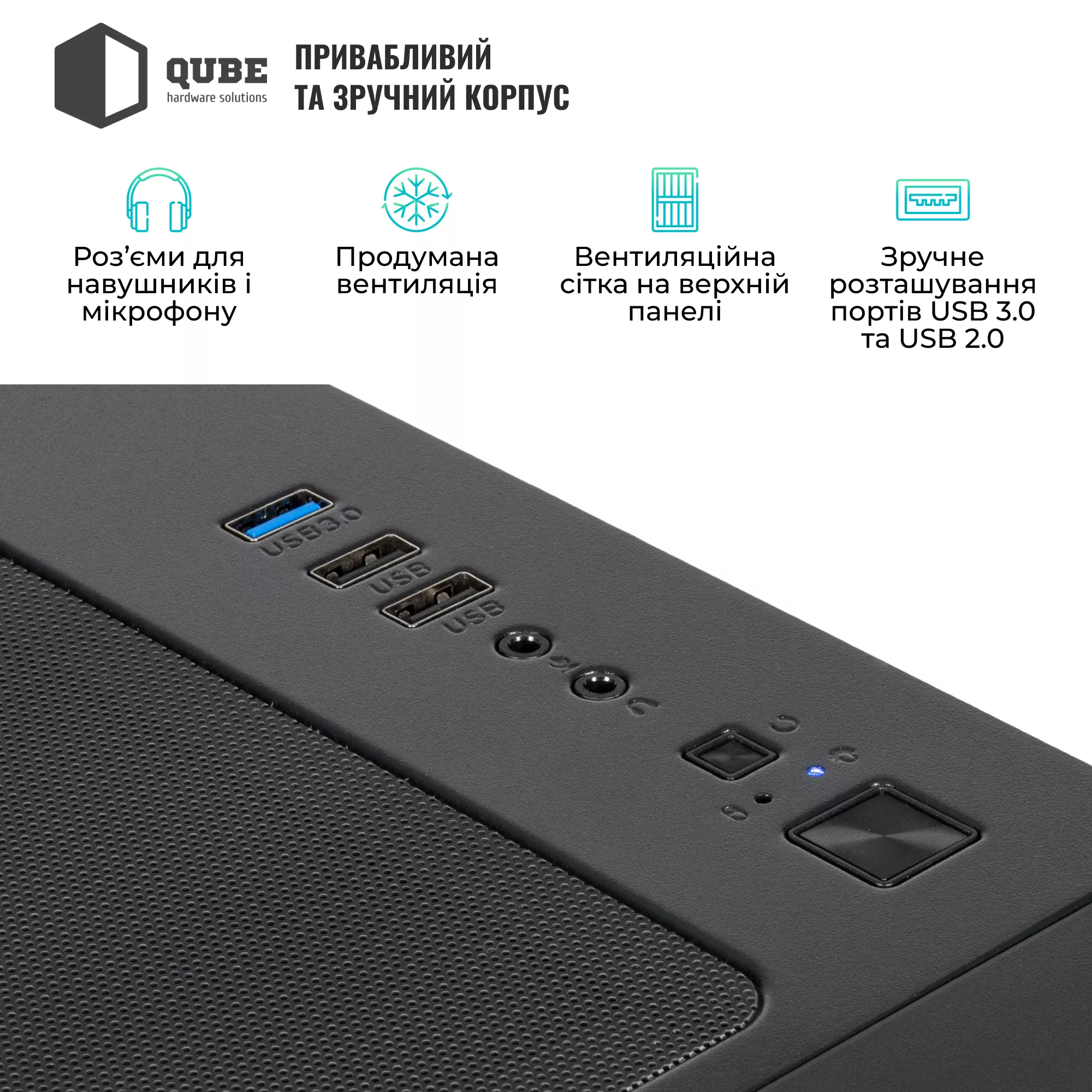 Системний блок QUBE Ігровий QB Ryzen 7 9700X RTX 5050 8GB MRGb 321020 — це потужна платформа нового покоління, створена в Україні для тих, хто прагне до максимальної продуктивності в сучасних іграх і вимогливих застосунках. Серія QUBE Ігровий традиційно об’єднує в собі високі технічні можливості, продуману інженерну архітектуру і стильний візуальний акцент, який підкреслює динамічний характер системи.