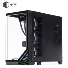 Корпус QUBE MIRAGE Black поєднує преміальну естетику і продуману термодинаміку. Загартоване скло товщиною 4 мм на передній і боковій панелях підкреслює дизайн внутрішнього підсвічування. Система охолодження включає дев’ять вентиляторів 120mm RGB LED: три знизу, три збоку, один ззаду і три зверху для підтримки роботи рідинної системи охолодження. Така конфігурація забезпечує потужний повітряний потік і стабільну температуру навіть під час інтенсивних ігрових сесій.