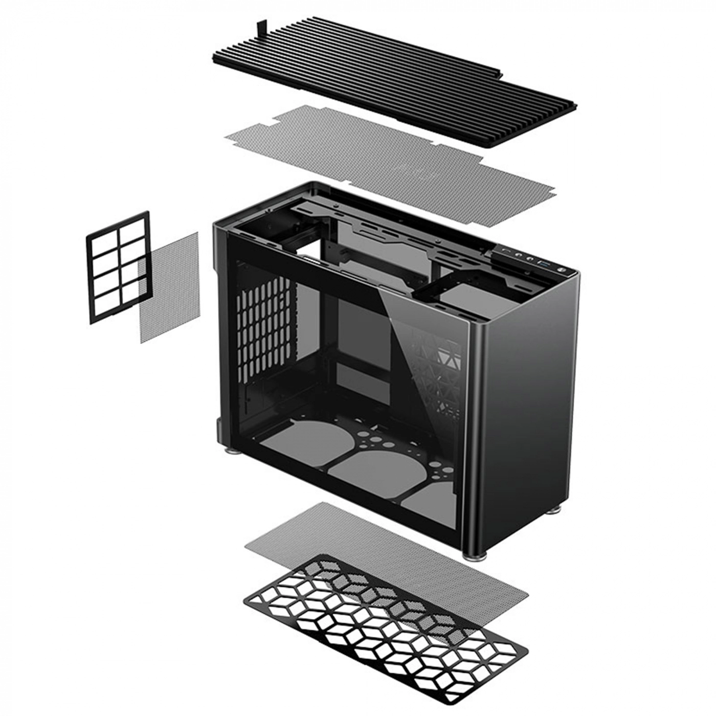Сделанный из листового металла толщиной 1-1,5 мм, корпус стоит как крепость. Забудьте о тревожных мыслях о порезах и царапинах – все острые края аккуратно обработаны и подогнуты, исключая риск травм. Боковые панели из тонированного закаленного стекла добавляют дополнительный шарм. Они выполнены из стекла толщиной 3 мм, что создает эффект "монолитности" и улучшает обзор внутреннего пространства.