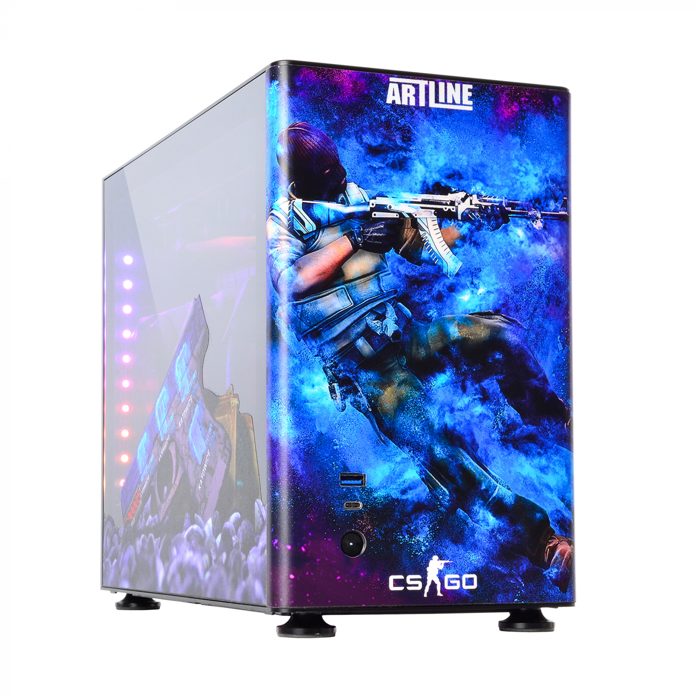 Корпус QUBE A4 Aluminum Printed CS:GO Space – компактный алюминиевый корпус с боковыми панелями из закаленного стекла. Дизайн кейса выполнен по мотивам популярной игры Counter-Strike. Помимо яркой передней панели с изображенным на нем террористом из игры, боковые панели также получили тематические рисунки.