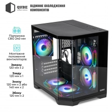 Корпус QUBE CRYSTAL ARGB Black оснащен четырьмя вентиляторами, обеспечивающими эффективное охлаждение даже при высоких нагрузках. Вентиляторы установлены так, чтобы создать оптимальный воздушный поток и предотвратить перегрев компонентов. Система охлаждения может быть настроена под ваши нужды есть возможность добавить дополнительные вентиляторы или установить жидкостную систему охлаждения. Перфорации и пылевые фильтры позволяют воздуху свободно циркулировать, сохраняя систему в чистоте и обеспечивая долговечность всех компонентов. ?️?