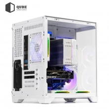 QUBE CRYSTAL ARGB White предлагает оптимизированное внутреннее пространство для размещения различных комплектующих. Здесь предусмотрены два слота для накопителей размером 3.5 дюйма и один слот для накопителей размером 2.5 дюйма, что позволяет легко организовать систему хранения данных. Корпус также поддерживает установку длинных видеокарт и высоких кулеров, что делает его отличным вариантом для геймерских и рабочих станций. Места для кабельной укладки упрощают монтаж и обеспечивают аккуратное размещение всех соединений, что особенно важно для поддержания хорошей вентиляции и удобства обслуживания.