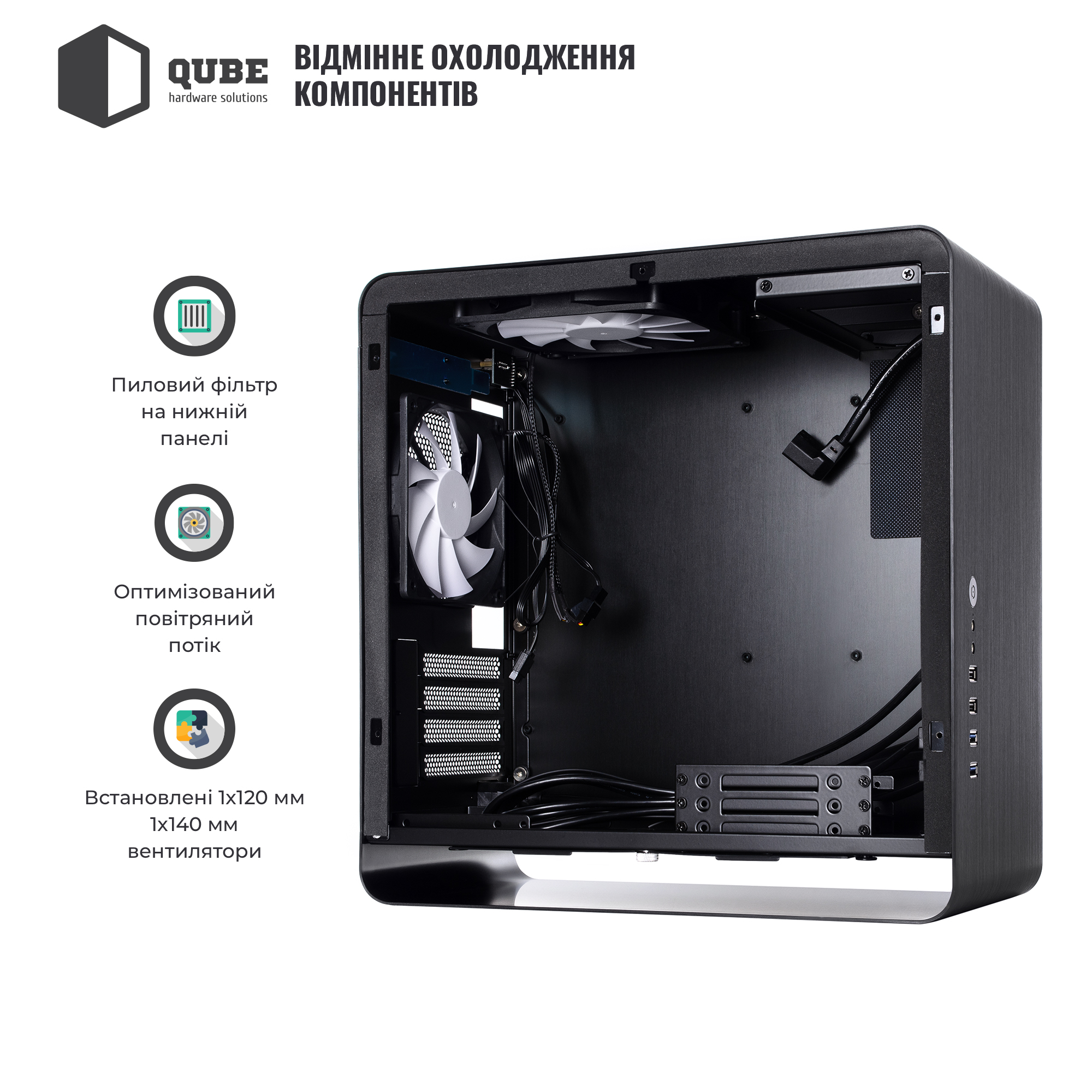 Фирменные корпуса QUBE отличаются современным дизайном, продуманной конструкцией, отличным функционалом и дружны к любому пользователю, который решился на самостоятельную сборку всех необходимых комплектующих в готовый персональный компьютер.