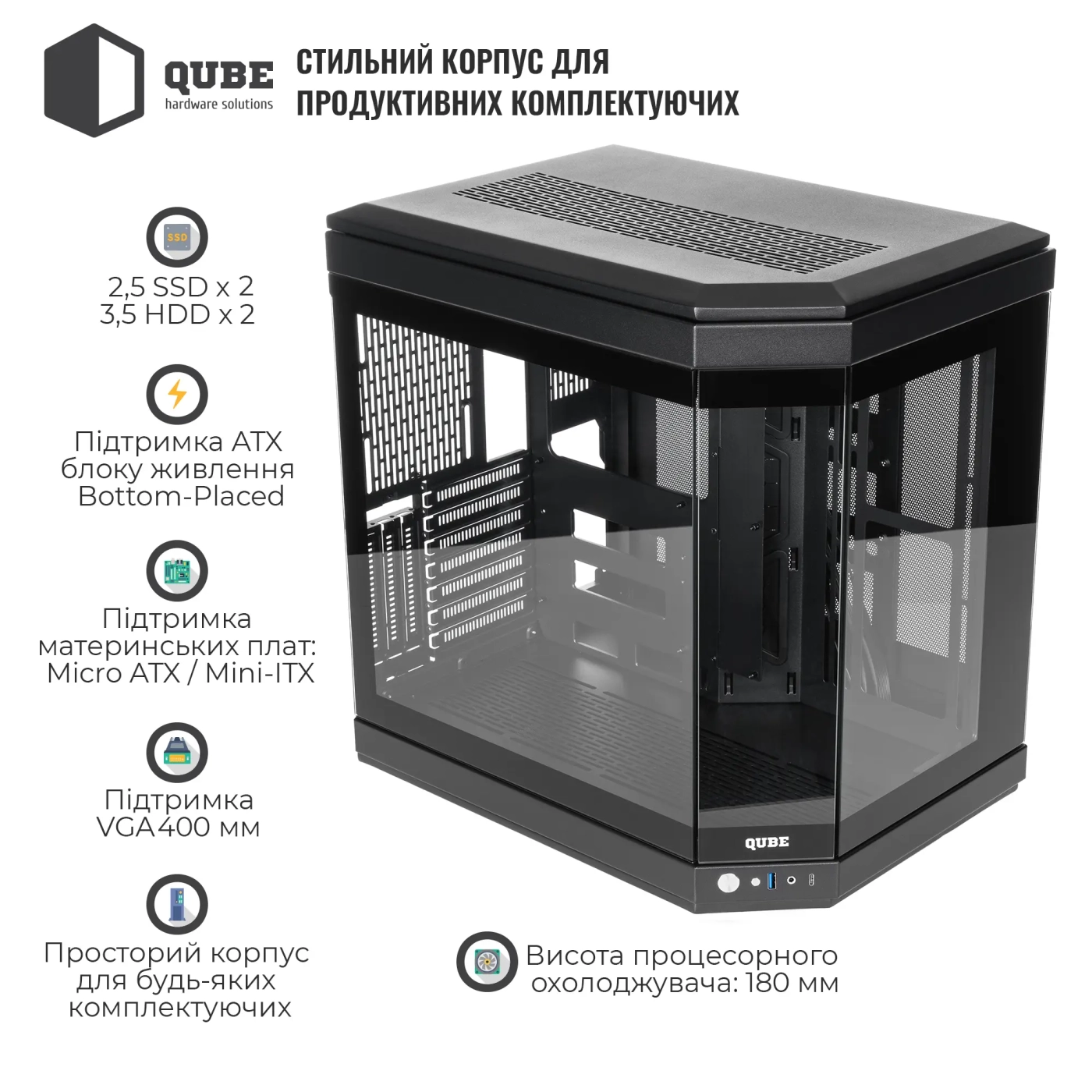 Итак, выбирая корпус QUBE F-TANK Full Black, вы получаете не только качественный и надежный продукт, но и прекрасное дополнение к интерьеру, которое будет радовать глаз и служить верой и правдой на протяжении долгих лет.