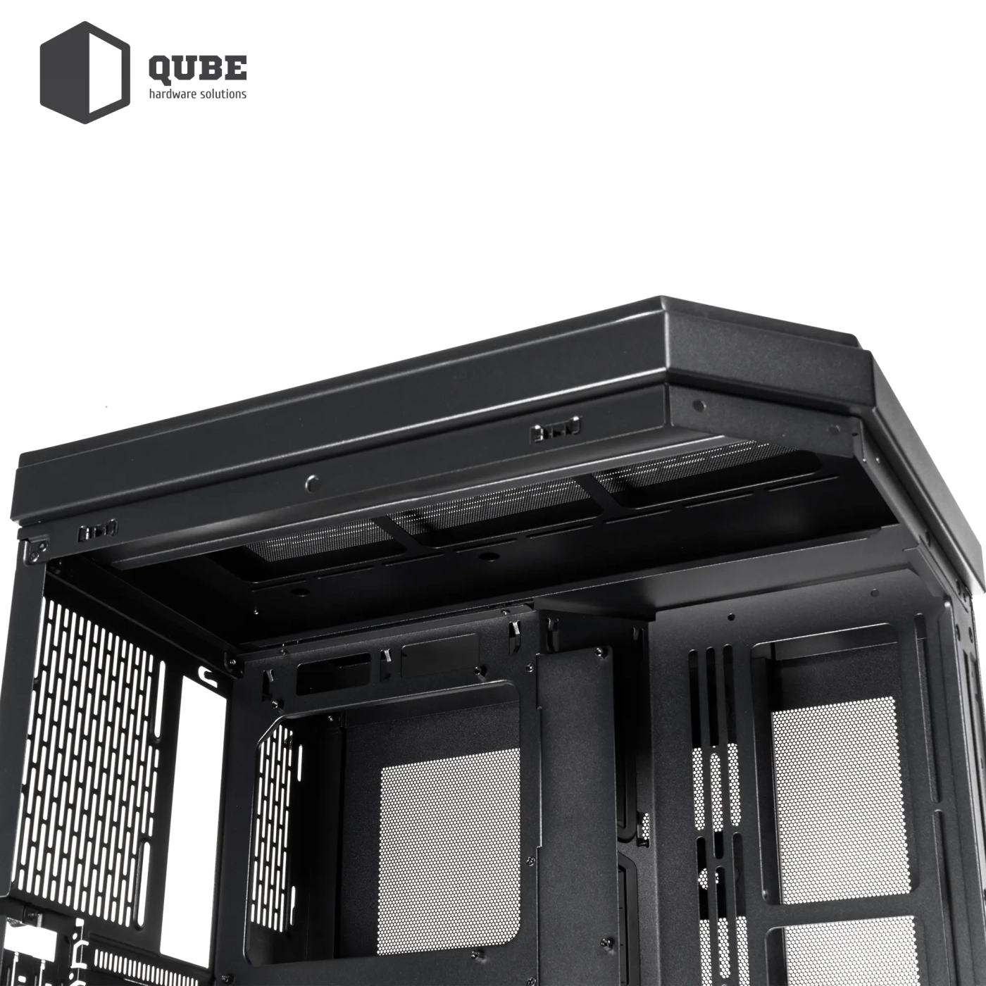 Стоит отметить, что корпус QUBE F-TANK Full Black оснащён продвинутыми техническими характеристиками, которые делают его идеальным выбором для сборки мощных игровых и рабочих станций. Внутреннее пространство корпуса спроектировано таким образом, чтобы обеспечить оптимальное охлаждение компонентов, что особенно важно при высоких нагрузках. Наличие множества слотов для вентиляторов и возможность установки систем водяного охлаждения с радиаторами до 360 мм позволяют поддерживать оптимальную температуру даже в самых интенсивных режимах работы.