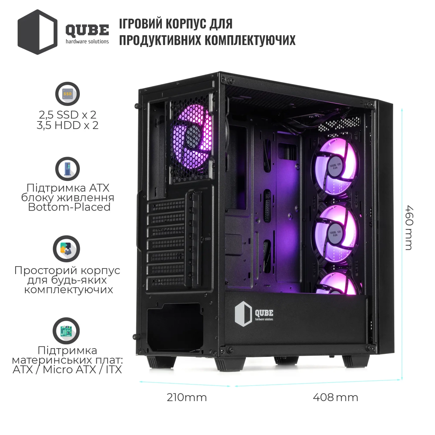 Оцените изысканный дизайн и надежность корпуса QUBE GERYON Black RGB fans (QBGERYON_FFBNU3)
