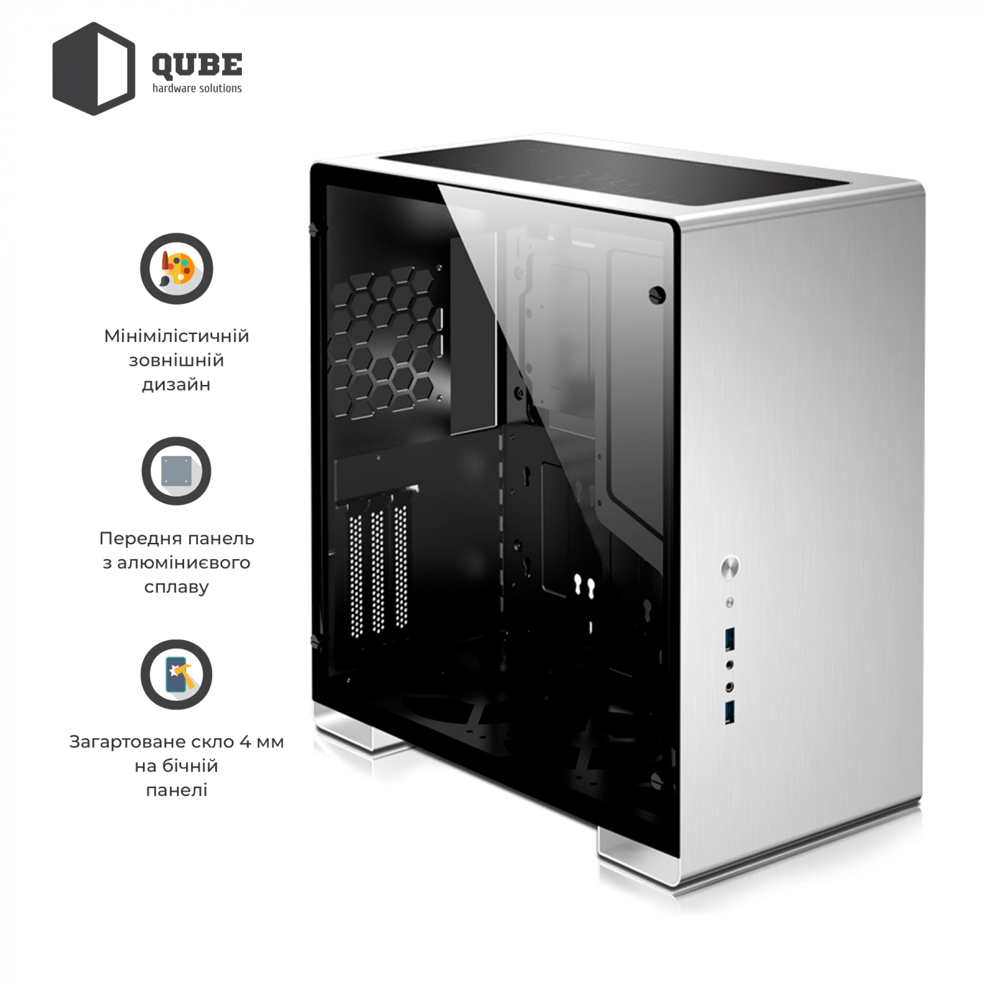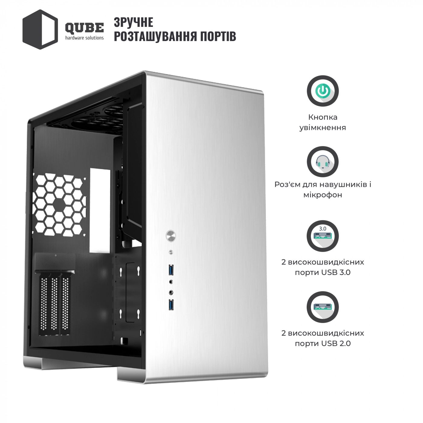 Корпус QUBE GRIFFIN Silver (QBU5S_WSNU3) / MiddleTower / ATX | microATX | mini-ITX / 2xUSB3.0 + Audio + Mic / 2x2.5"/3.5" / 2x2.5" / 418x219x440 / Серебристый / 12мес. / QBU5S_WSNU3