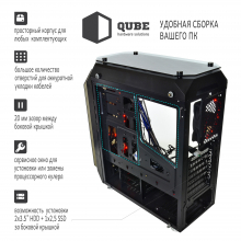 Фирменные корпуса QUBE отличаются современным дизайном, продуманной конструкцией, отличным функционалом и дружны к любому пользователю, который решился на самостоятельную сборку всех необходимых комплектующих в готовый персональный компьютер.