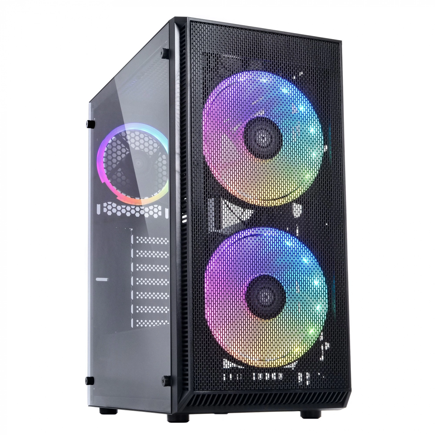 Фронтальная панель черного цвета с перфорацией по всей площади способствует прохождению свежего воздуха и его отличной циркуляции. Съемный противопылевой фильтр на магнитах поможет поддерживать относительную чистоту внутреннего пространства корпуса.