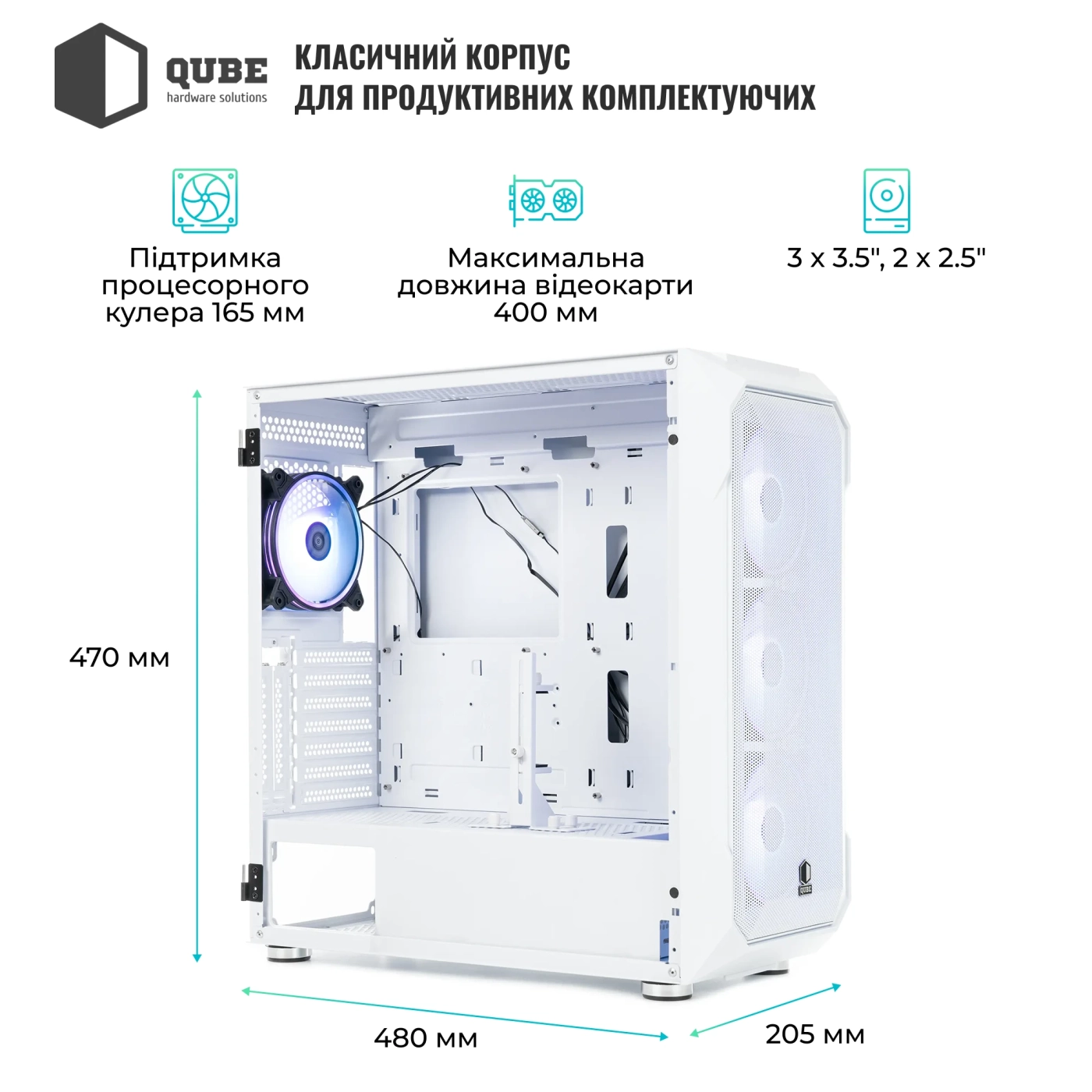 Характеристики корпуса QUBE ORION White (ORION_FMNU3):