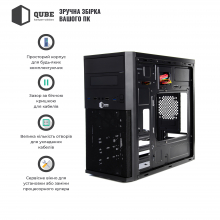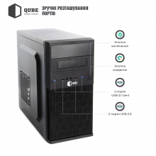 Модель QUBE QB07M – это недорогой корпус формата MiddleTower, который подойдет для нетребовательного пользователя. Все острые края листового металла толщиной 0,5 мм аккуратно зашлифованы или подогнуты, тем самым исключается возможность пораниться при сборке.