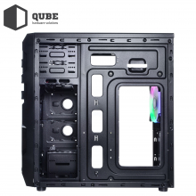 Модель QUBE QB932A Black – это просторный корпус формата MiddleTower, который удовлетворит требования подавляющего числа пользователей. Острые края каркаса, изготовленные из листового металла в 0,45 мм, аккуратно зашлифованы или подогнуты, тем самым исключается любая возможность пораниться при сборке. Большое сервисное окно для установки или замены процессорного кулера, технологические окна для аккуратной разводки и монтажа кабелей, достаточный зазор за боковой крышкой – все это сделано для вашего удобства.