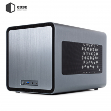 Особенность конструкции корпуса – сплошной кожух из толстого алюминия, который закрывает со всех сторон внутренний каркас. Такая конструкция отлично подойдет для пользователей, уважающих выдержанный стиль и элегантность в сочетании с малыми габаритами. В нижней части передней панели производитель вынес высокоскоростной порт USB 3.0, порт Type-C, большую кнопку включения питания, а также комбинированный аудиоразъем. На боковых гранях разместились противопылевые сетчатые фильтры.
