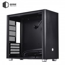 Модель QUBE V9 – это небольшой корпус-параллелепипед черного цвета формата MiniTower, который удовлетворит требования большинства пользователей. Края металла (алюминиевые панели и стальной каркас) аккуратно зашлифованы или подогнуты, тем самым исключается любая возможность пораниться при сборке. Внутреннее убранство отличается продуманностью и минималистичностью, а боковая панель выполнена из закалённого стекла толщиной 4 мм.