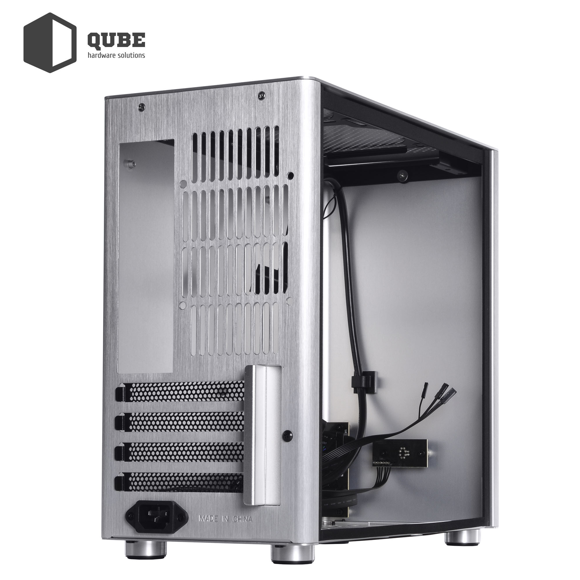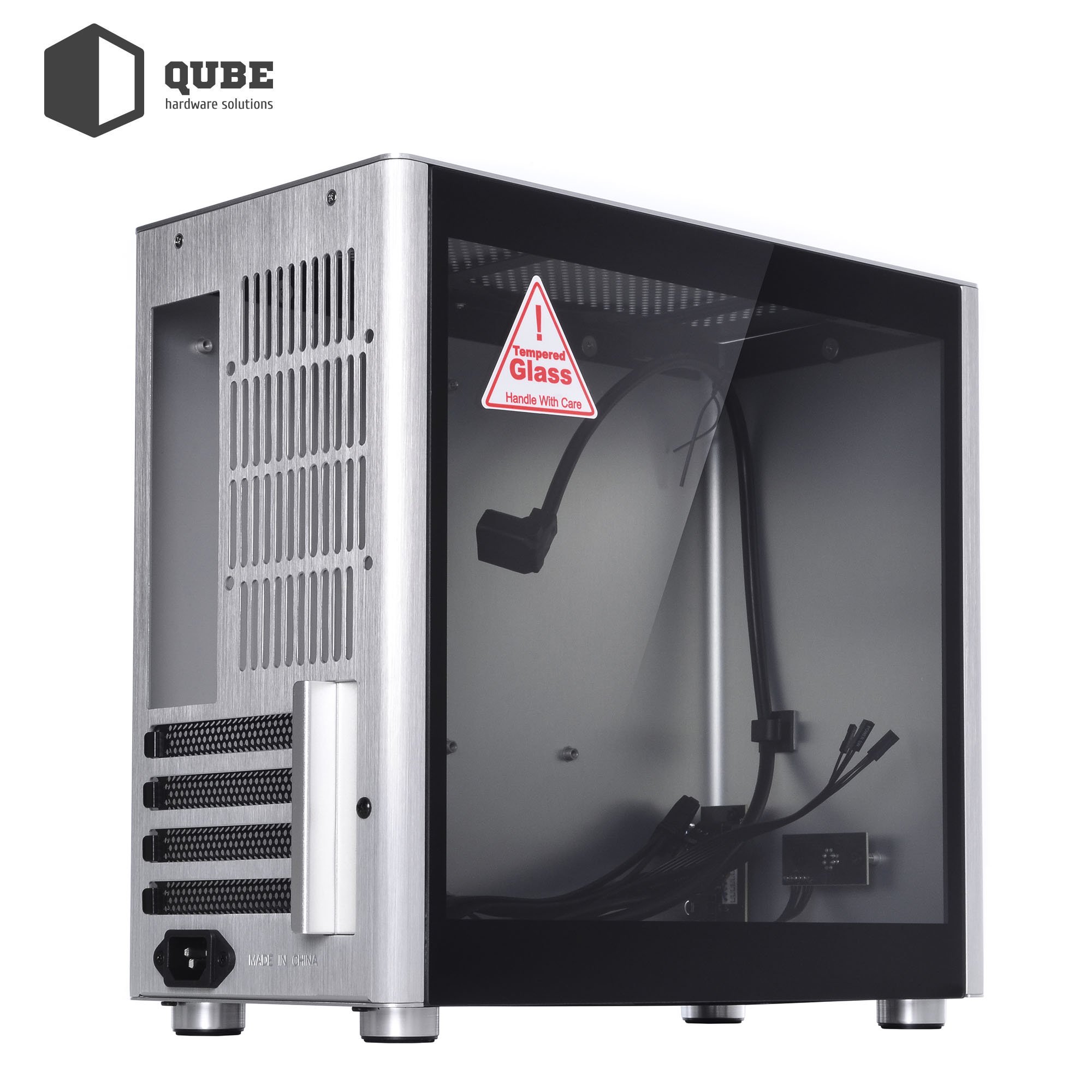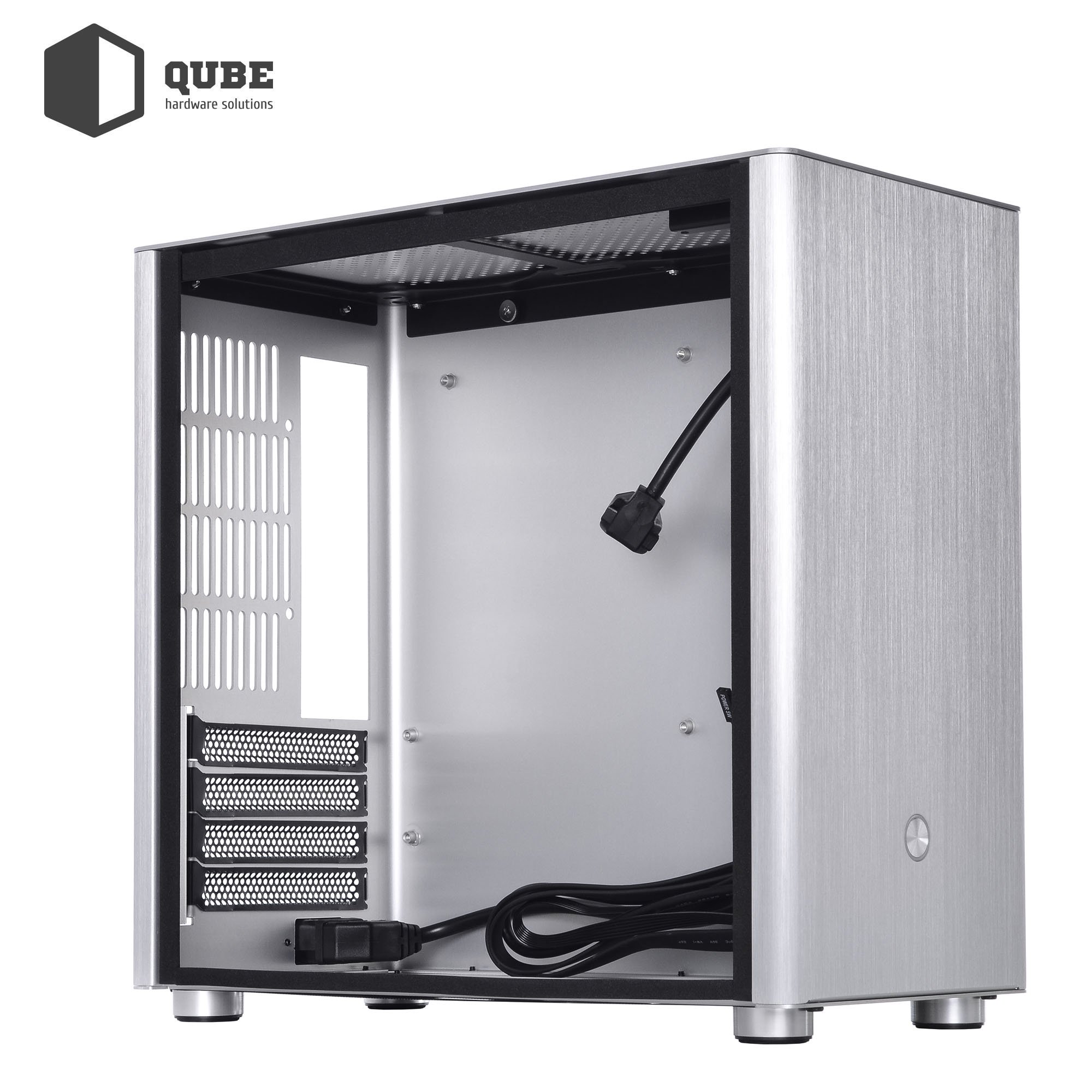 Модель QUBE V9 Neptune – это небольшой корпус-параллелепипед черного цвета формата MiniTower, который удовлетворит требования большинства пользователей. Края металла (алюминиевые панели и стальной каркас) аккуратно зашлифованы или подогнуты, тем самым исключается любая возможность пораниться при сборке. Внутреннее убранство отличается продуманностью и минималистичностью, а боковая панель выполнена из закалённого стекла толщиной 4 мм.
