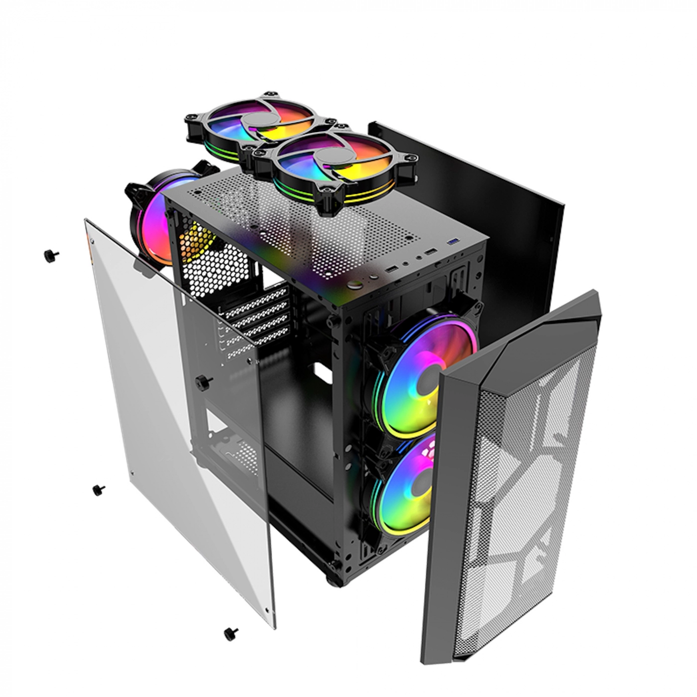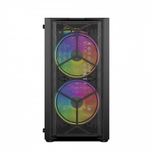 Дизайн корпуса отличается своей лаконичностью и универсальностью – на его основе вполне можно собрать не только игровой, но и рабочий ПК. Корпус отлично впишется в любой интерьер и точно привлечет внимание стеклянной боковой панелью, через которую отлично будет видно все комплектующие будущего компьютера, передней металлической панелью с перфорацией и установленными вентиляторами с яркой RGB подсветкой.