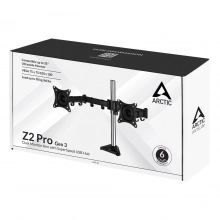 Кроме того, встроенный USB-концентратор 2.0 с четырьмя портами значительно расширяет функциональность вашего рабочего места, предоставляя дополнительные возможности для подключения различных устройств непосредственно к кронштейну. Таким образом, все необходимые порты будут всегда под рукой, что существенно улучшит организацию пространства на вашем столе и позволит избежать лишней путаницы с кабелями. В итоге, Arctic Z2 Pro (Gen 3) станет не просто элементом для удержания вашего монитора, а настоящим центром управления вашим рабочим пространством, способствуя повышению продуктивности и уровня комфорта при работе.