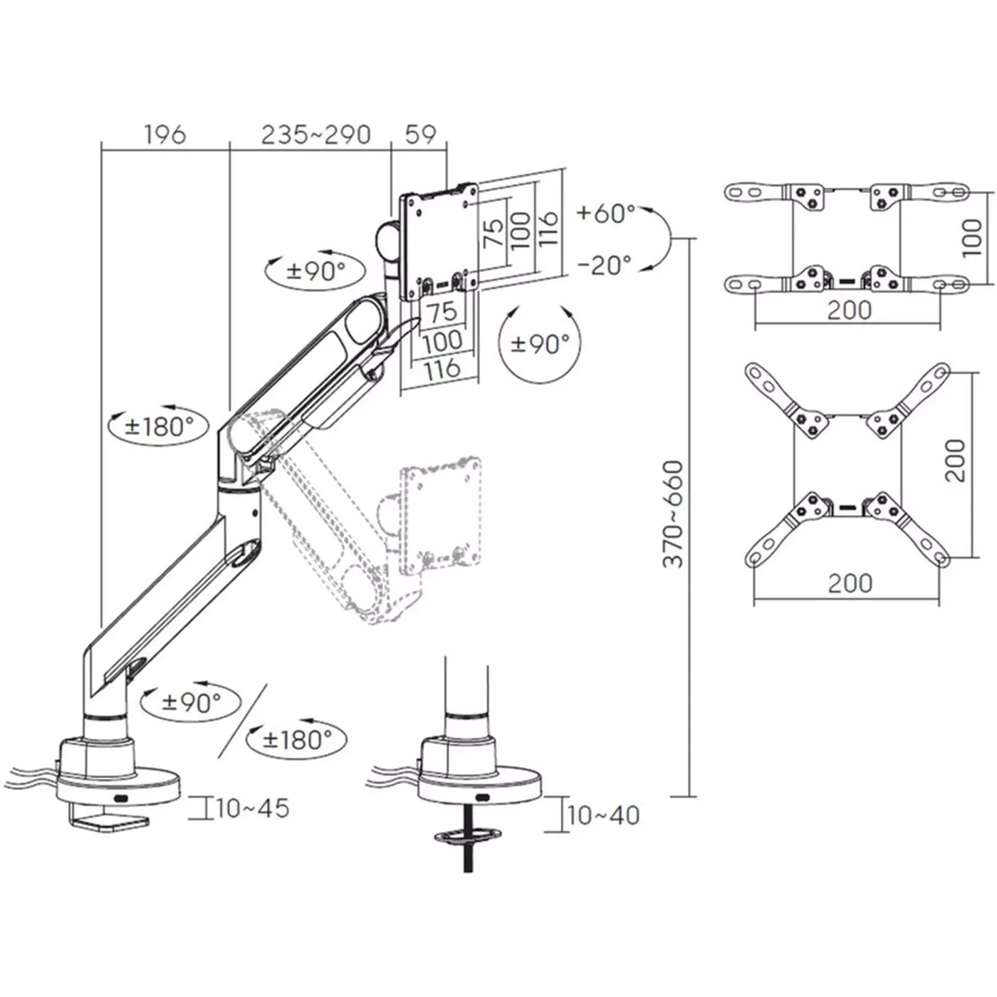 Officepro MAH821B оснащен современным газлифт-механизмом, который обеспечивает плавную регулировку положения экрана, позволяя изменять угол наклона, поворота и даже разворота на 90 градусов. Это позволяет настроить монитор под индивидуальные потребности, снизить нагрузку на глаза и шею и создать максимально эргономичное рабочее место. Возможность регулировки высоты делает кронштейн универсальным для пользователей любого роста и сценариев использования.