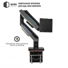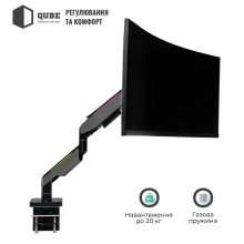 Кронштейн Qube RGB4920G – это не только функциональное решение, но и стильный аксессуар для вашего рабочего места, который добавит удобства и комфорта в повседневное использование монитора. Его плавная регулировка, совместимость с большинством современных мониторов и стильный дизайн с RGB-подсветкой делают его незаменимым элементом для тех, кто ценит комфорт и эстетику. ?️