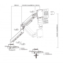 Кронштейн оснащён быстросъемной пластиной VESA, что значительно упрощает процесс установки монитора. Монтажная база позволяет надежно закрепить конструкцию на столе, не повреждая поверхность. Верхняя монтажная основа и простая система сборки обеспечивают интуитивно понятный процесс установки даже без специального инструмента.