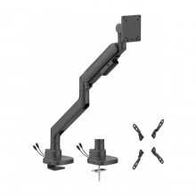 Крепление оснащено функцией кабель-менеджмента, что помогает поддерживать порядок на рабочем месте. Специальные зажимы позволяют аккуратно спрятать кабели, предотвращая их спутывание и повышая эстетическую привлекательность рабочего пространства.