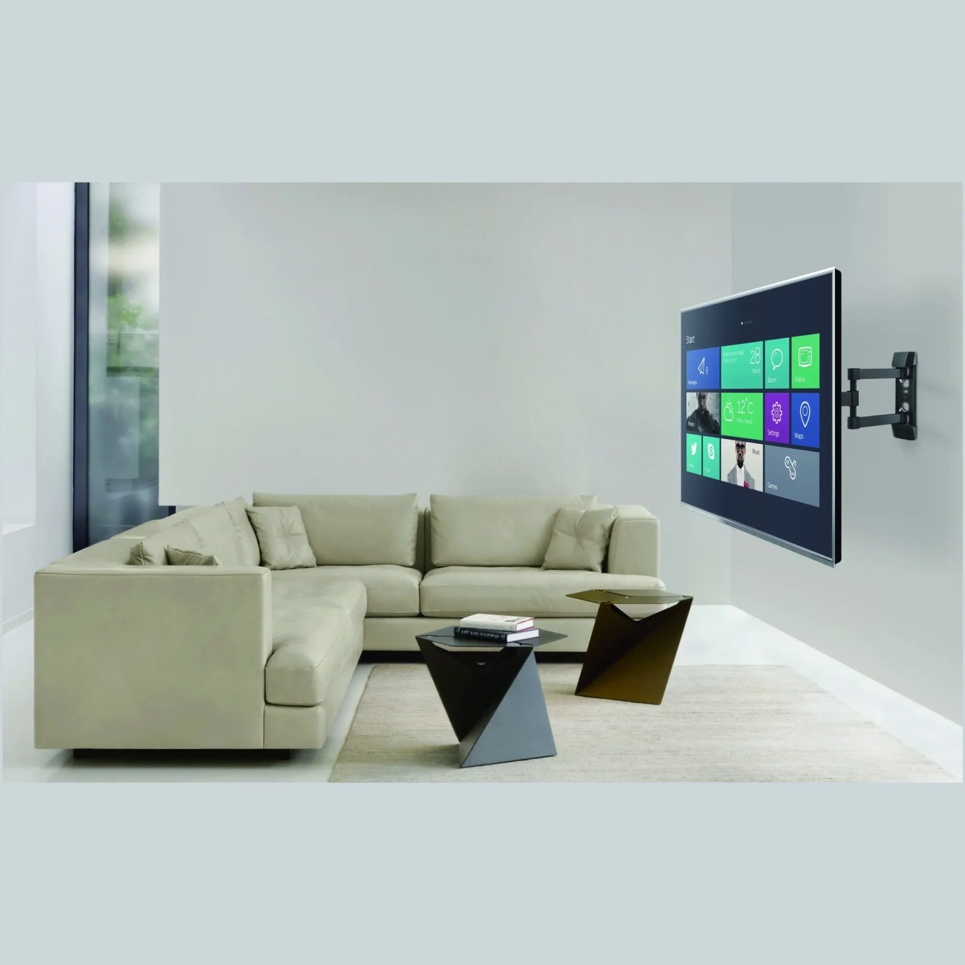 Кронштейн позволяет поворачивать телевизор на 180° и наклонять на угол до +3° / −10°, что обеспечивает максимальную адаптацию под условия комнаты и предпочтения зрителей. Встроенный пузырьковый уровень помогает легко и точно выровнять кронштейн при установке, а полный комплект монтажных материалов облегчает процесс сборки и монтажа. Конструкция выполнена из качественной стали с порошковым покрытием, что придаёт изделию элегантный внешний вид и обеспечивает стойкость к коррозии и износу.