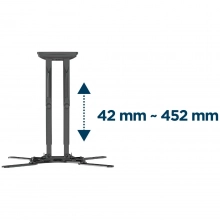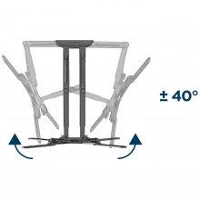 Кронштейн поддерживает стандарты VESA от 100×100 до 400×400 мм, что делает его совместимым с большинством современных телевизоров и мониторов. Он обеспечивает наклон от –2° до +10°, поворот на 80°, а также регулировку расстояния от стены в диапазоне от 42 до 452 мм. Механизм поворота и наклона позволяет точно настроить экран под оптимальный угол обзора, а встроенные направляющие для кабелей обеспечивают аккуратное ведение проводов. В комплекте идут все необходимые монтажные элементы для быстрой и удобной установки.